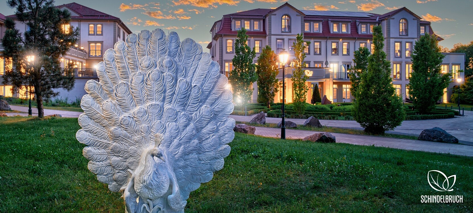 Kaendlers MenagerieMit dem Aufstellen der Tierplastiken aus Porzellan in der hochmodernen Hotelanlage sowie der Adaption der ikonischen Werke auf sagenhaft schönen Wandinstallationen ist auf eindrucksvolle Art und Weise eine Brücke von der Tradition zur Moderne geschlagen worden. Die eingesetzten Figuren, vom radschlagenden Pfau, über den Edel-reiher und den Ara bishin zum Affen mit Schnupftabakdose, sind ein wichtiges Stück MEISSEN-Geschichte, welche bis in das frühe 18. Jahrhundert hineinragt. Viele dieser Figuren entstammen Originalen, die ursprünglich von Johann Joachim Kaendler, einem der bedeutendsten Porzellanmodelleure MEISSENs geschaffen wurden. Von August dem Starken höchstpersönlich als Hofbildhauer und Modellierer in der Porzellan-Manufaktur angestellt, begann Kaendler frühzeitig damit, den Traum des Königs nach einem Schloss aus purem Porzellan wahrzumachen. So entstanden ab 1731 zahlreiche Tierplastiken für das japanische Palais, welche nun für die Kooperation mit dem Naturresort & Spa Schindelbruch nachgebildet wurden.