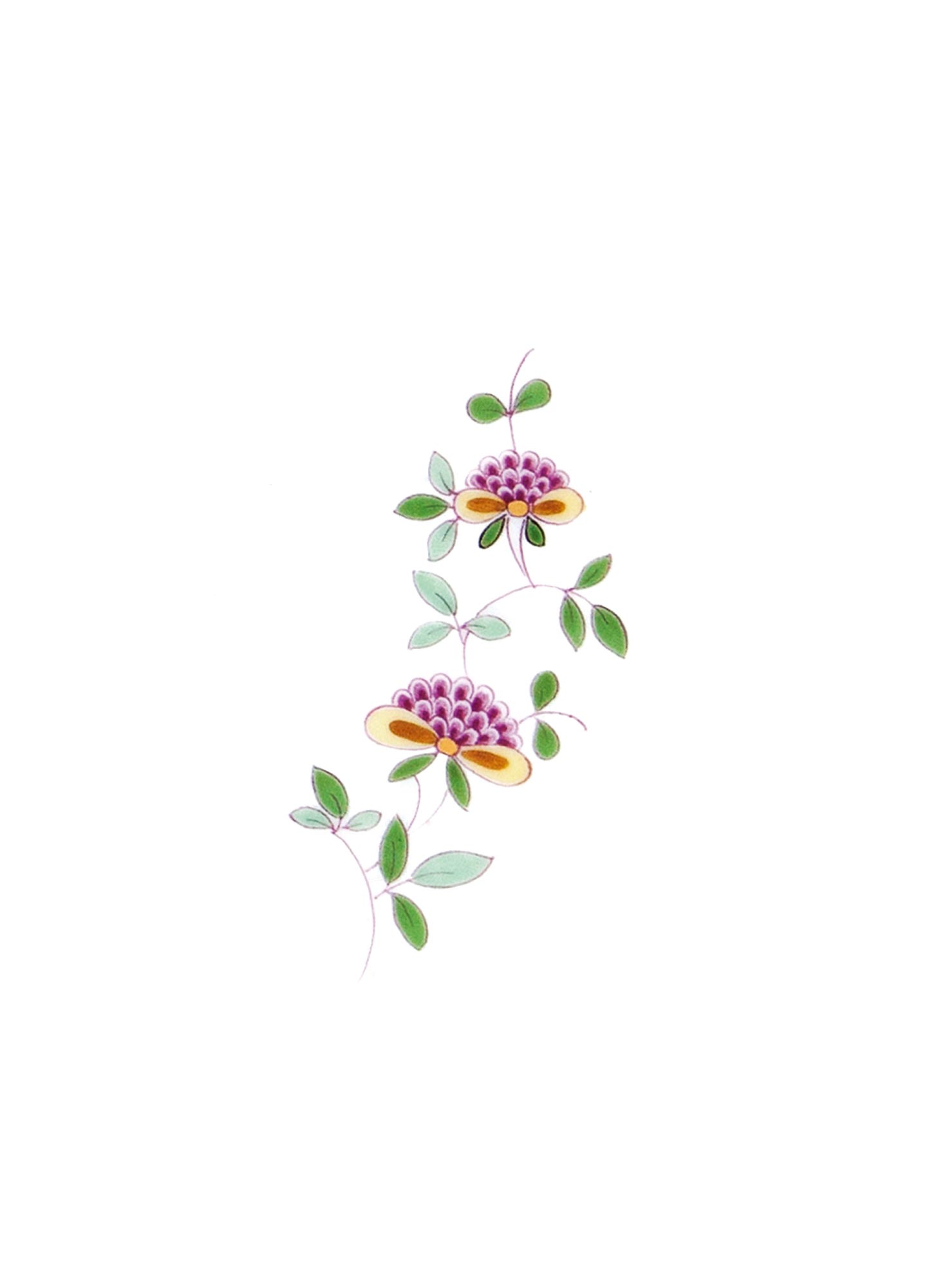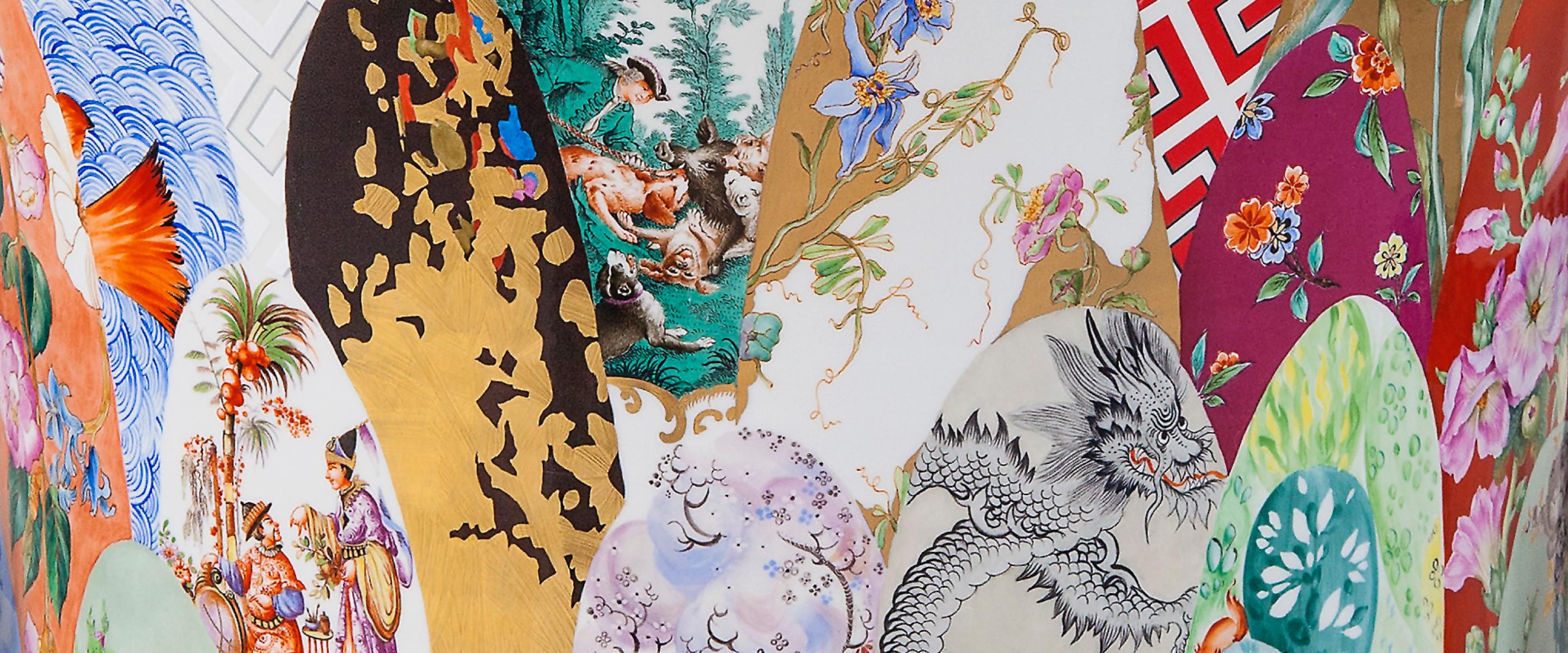 Indische BlumenzweigeDie „Indischen Blumenzweige“ gehören zu den ältesten Dekoren der Manufaktur Meissen. Sie werden bereits 1720 zur Zier von Tafelgeschirr und Vasen verwendet. Der „indianischen“ Blumenmalerei nach ostasiatischen Vorbildern nachempfunden, stecken sie voller Symbolkraft. In ihr nimmt der Lotus als Zeichen der Reinheit und Erleuchtung eine besondere Stellung ein. Aus schlammigem Grund gewachsen, erstrahlt er rein und unbefleckt in voller Blüte – ein Sinnbild, dessen metaphorischer Gehalt ebenso auf das Meissener Porzellan übertragen werden könnte.