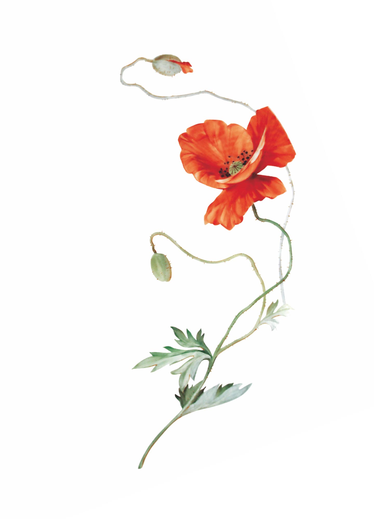 Von der Botanik beeinflusst, bildet die Blumenmalerei nach naturalistischem Vorbild seit dem 18. Jahrhundert einen wichtigen Zweig im Dekorrepertoire der Manufaktur Meissen. Dabei lassen sich die Porzellanmaler nicht nur von der Natur sondern auch vom künstlerischen Schaffen ihrer Zeit inspirieren. Auf- und Unterglasurfarben oder die Kombination aus beiden werden in verschiedenen Maltechniken genutzt, um Ideen in erfrischender Weise auf Porzellan umzusetzen. Als zeitgenössischer Dekor ist „Roter Mohn“ von den freien, fließenden Formen floraler Aquarellmalerei inspiriert und fängt die flammenden Rottöne sommerlicher Felder in einer leichten Komposition ein. Anders als bei der Manierblumenmalerei ist es das Momenthafte des Motivs, in dem der Dekor seine Schönheit findet.
