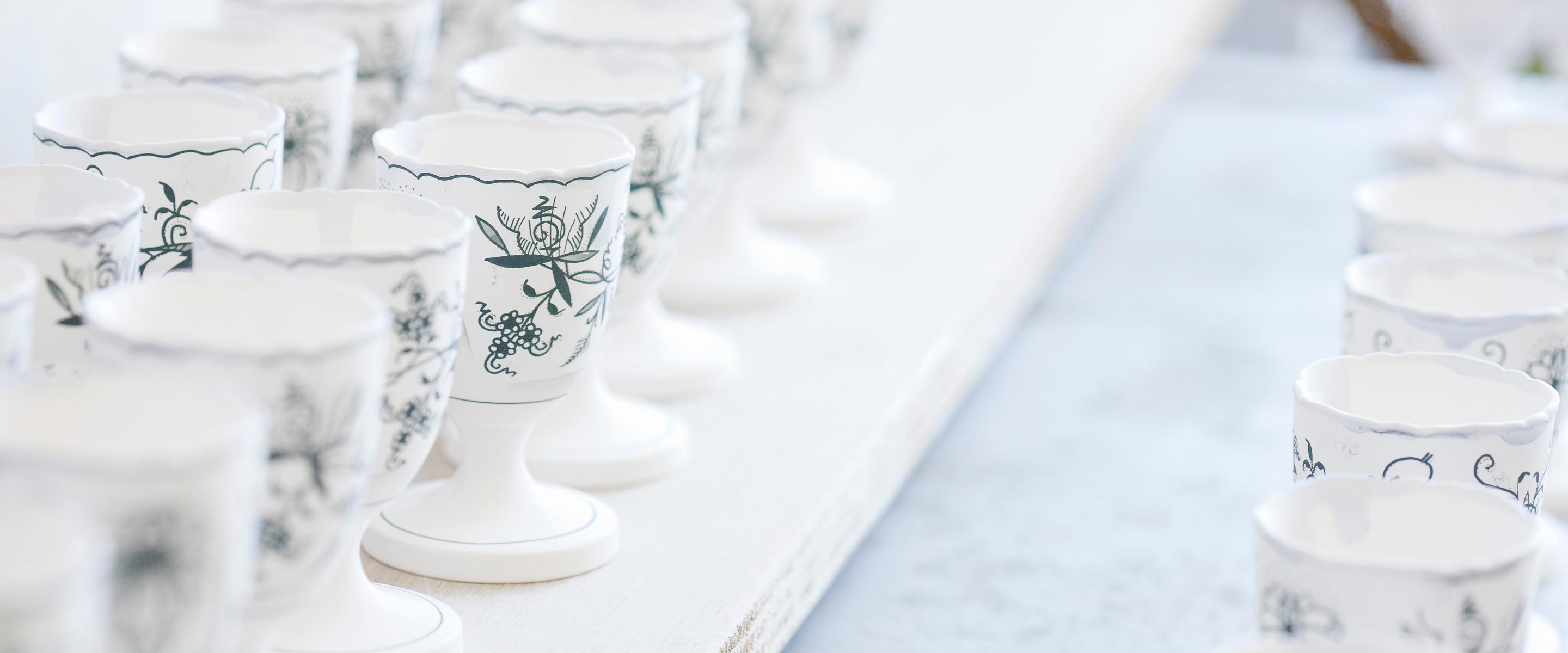 ZwiebelmusterEs ist das erfolgreichste Blaudekor der Porzellangeschichte. Um 1731 entsteht das strahlend blaue „Zwiebelmuster“ nach ostasiatischen Vorbildern. So stellt der Dekor tatsächlich keine Zwiebeln dar, sondern zeigt – in Anlehnung an seine Vorbilder – Pfirsich und Melone auf dem Tellerrand sowie Bambusstock und die zarten Blüten der Chrysantheme in der Mitte. Die an Zwiebeln erinnernden, stilisierten Motive des Meissener Musters entstehen dabei ohne Originalvorlage. Bis heute wird das Meissener „Zwiebelmuster“ von eigens ausgebildeten Unterglasurmalern auf das Material gebracht. Dabei wird für die Herstellung aller Blauporzellane, damals wie heute, nur manufaktureigenes Kobaltblau verwendet. Die unterschiedlichen Farbintensitäten werden mit nur einer Farbe realisiert.
