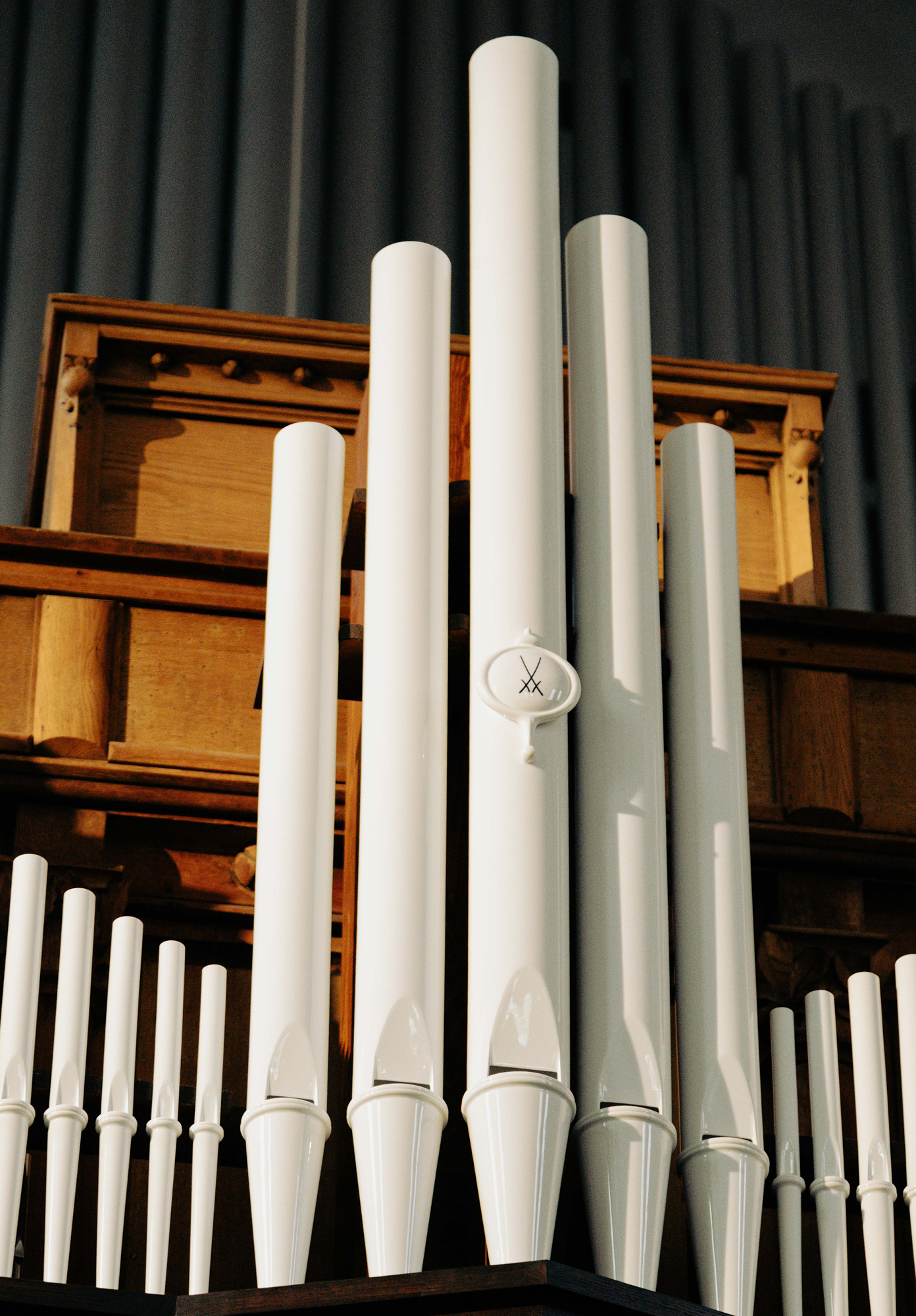 Kirchenorgel mit Pfeifen aus Meissener PorzellanDie Jehmlich-Orgel in der Frauenkirche Meißen wurde feierlich als weltweit erste Kirchenorgel mit klingenden Orgelpfeifen aus Meissener Porzellan eingeweiht.