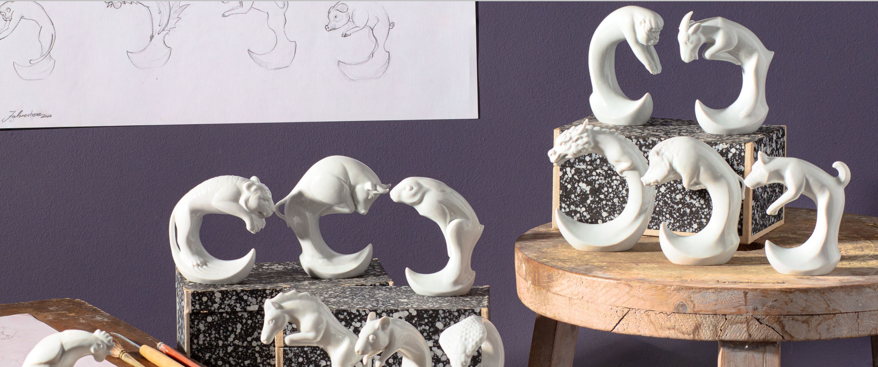 Im Jahr 2021 widmet sich Maria Walther den 12 chinesischen Tierkreiszeichen und interpretiert diese mit einer modern zeitgenössischen Formensprache, die das strahlend weiße Meissener Porzellans besonders eindrucksvoll zur Geltung kommen lässt.