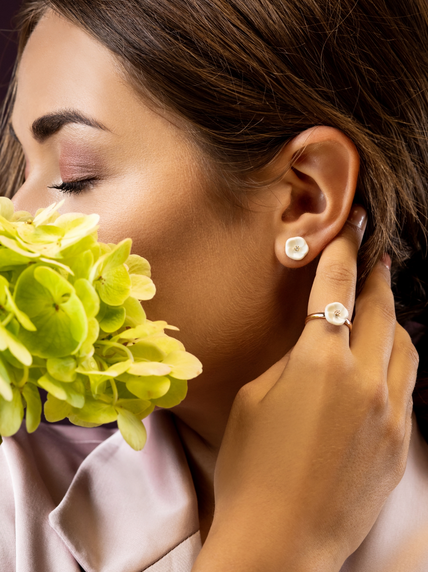 Ringe gehören mit zu den ältesten Schmuckstücken der Welt und sind nicht nur ein Symbol der Liebe und Verbundenheit. Sie können auch die Glaubensrichtung, Reichtum, Macht oder die eigenen Ideale symbolisieren. Ausschlaggebend sind sowohl das Material als auch das Design, welches jedem Ring seine spezifische Bedeutung verleiht. Ob Freundschaftsring, Siegelring, Ehering, Taufring oder Familienring – jeder Ring steht für sein ganz eigenes Versprechen. Aber das wohl romantischste Versprechen symbolisiert der Verlobungsring – er steht für ewige Liebe, Zuneigung und Wertschätzung. Der Ring an sich wurde schon in der Antike aus einem Guss kreisförmig geschmiedet – ohne Anfang und Ende – und war damit ein Zeichen enger Verbundenheit. Aus dieser Zeit stammt auch der Ritus, den Ring an den Ringfinger der linken Hand zu stecken. Dem Glauben nach ist dieser Finger durch eine Vene direkt mit dem Herzen verbunden. Darüber hinaus gilt die linke Körperhälfte als die Herzseite – wo alle Gefühle ihren Platz finden. Mit dieser romantischen Botschaft ist es insbesondere der Verlobungs- oder Ehering, der seinen Platz an diesem Finger findet. Auch unsere Schmuckkollektion „1739 Royal Blossom“ war einst ein Versprechen ewiger Liebe und hat ihren Ursprung in der wohl bekanntesten Liebesgeschichte der Porzellanmanufaktur. Geschaffen 1739 von Johann Joachim Kaendler zierten die originalen Schneeballblüten einst das prunkvolle Service, das König August III. als Geschenk für seine geliebte Gemahlin Maria Josepha in Auftrag gab. Fast 300 Jahre später wird das Symbol dieser romantischen Geste – die ikonische Porzellanblüte – in unserer Manufaktur in einzigartige Schmuckstücke verwandelt. Aber bevor die zarte Schneeballblüte den goldenen Ring ziert, wandert sie durch viele Hände. Die Blüte wird mit großer Wertschätzung für das Material von Hand geformt, mit den blauen Schwertern gekennzeichnet, gebrannt, glasiert und mit einem Diamantblumenstempel gekrönt. Das macht jedes Schmuckstück zu einem kleinen Unikat – das der Beginn Ihrer ganz persönlichen Liebesgeschichte sein kann.