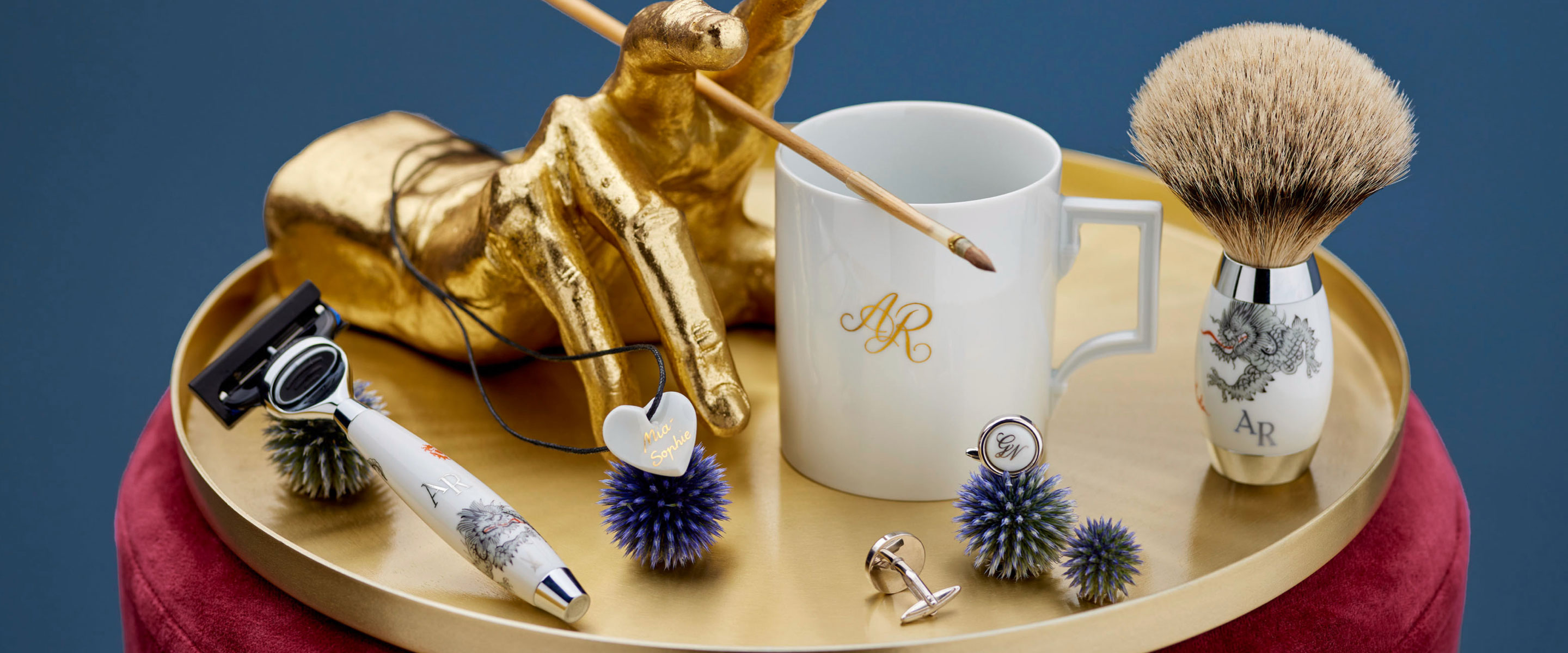 Mit einem individualisierten Geschenk von MEISSEN können Sie Ihren Liebsten eine ganz besonders persönliche Freude machen. Unsere Porzellanmaler*innen malen ganz nach Ihren Wünschen, je nach Produkt, ein Monogramm oder ein Datum auf. Wie wäre es zum Beispiel mit einem unserer Herz-Anhänger mit dem Datum eines feierlichen Ereignisses für Sie oder einem individuellen Rasierhobel mit Ming-Drache und Monogramm aus unserer Mühle X MEISSEN Kollektion für ihn? Ein personalisiertes Geschenk verleiht Ihrem Präsent eine individuelle Note. Es signalisiert nicht nur Wertschätzung, sondern sagt: Du bist wichtig für mich, ich sehe dich, ich schätze dich.