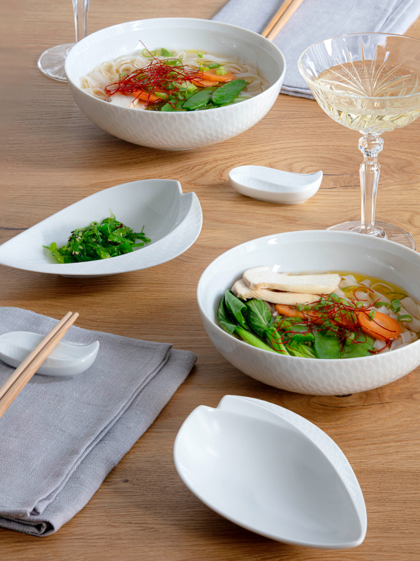 Asiatische / koreanische Küche – Egal ob thailändisch, chinesisch oder japanisch - die Liebe für die asiatische Küche ist im Grunde seit vielen Jahren ungebrochen. Doch mit der Begeisterung für die südkoreanische Kultur in Deutschland, Europa und der Welt wird dieser Trend noch einmal in ganz neue Sphären gehoben. Gerichte wie Bibimbap, Japchae oder Bulgogi haben die kulinarischen Herzen der südkoreanischen Fans längst im Sturm erobert. Einfache Rezepte für Tteokbokki (Frittierter Reiskuchen mit Chilipaste) oder Oi Muchim (Scharfer Gurkensalat) sind weltweit viral gegangen und haben die Community zum Nachmachen angeregt. Die „Wellenspiel Relief Asien Kollektion“ wurde speziell entworfen, um die Schönheit und Ästhetik der asiatischen Kultur einzufangen. Das kunstvolle Relief spiegelt traditionelle Muster und Symbole aus der Region wider und verleiht Ihrer Tafel ein elegantes und exotisches Flair.