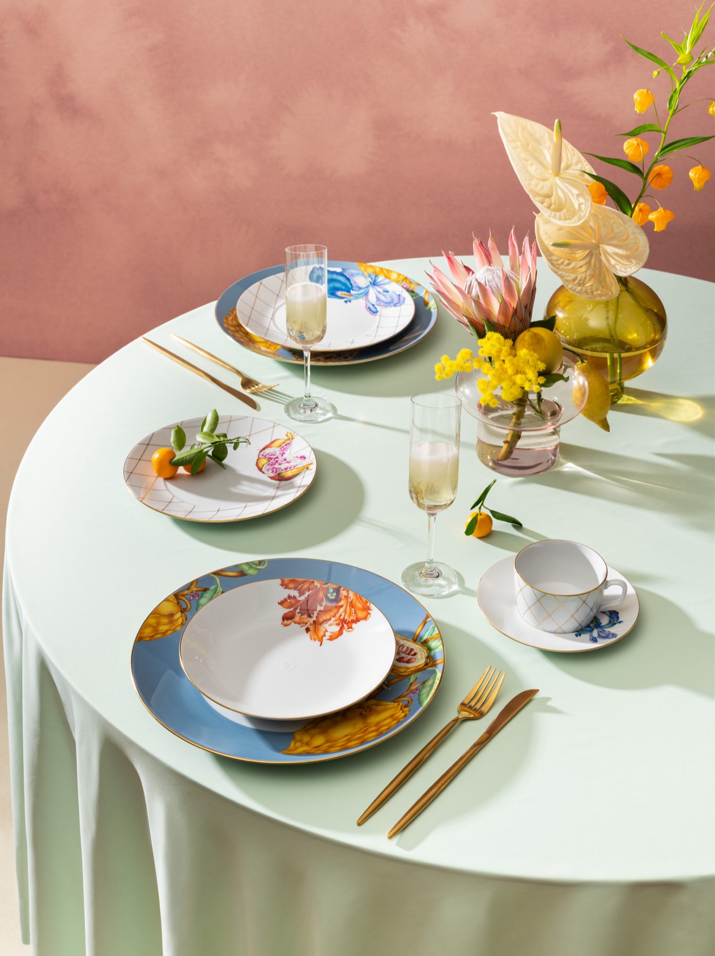 Individualität & Kreativität - Schluss mit Vorgaben. Noch nie hatten wir so viel Entscheidungsspielraum wie in der heutigen Zeit. Ob es das Outfit ist, das uns zur nächsten Feierlichkeit begleitet und unsere Persönlichkeit & Individualität widerspiegelt oder der individuelle Avatar unserer zahlreichen digitalen Accounts – Wir können uns, unser Umfeld und unser Leben jeden Tag aufs Neue selbst gestalten. Warum also ein für alle Mal festlegen, wenn es um unsere Tisch- & Tafelkultur geht? Mix & Match ist das Zauberwort – kombinieren Sie Ihre Lieblingsteller, erweitern Sie Ihre bestehenden Tisch- & Tafel-Elemente um neue Stücke aus einer ganz anderen Kollektion oder schaffen Sie mit einer neuen, kreativen Verbindung eine einzigartige Atmosphäre. Wie wäre es zum Beispiel mit einer Kombination aus der strahlend weißen "N°41 Royal Blossom" Kollektion mit dem ikonischen Blütenmeer-Relief und der raffinierten „N°41 Noble Blue" Kollektion mit moderner Interpretation des berühmten Zwiebelmuster-Dekors?
