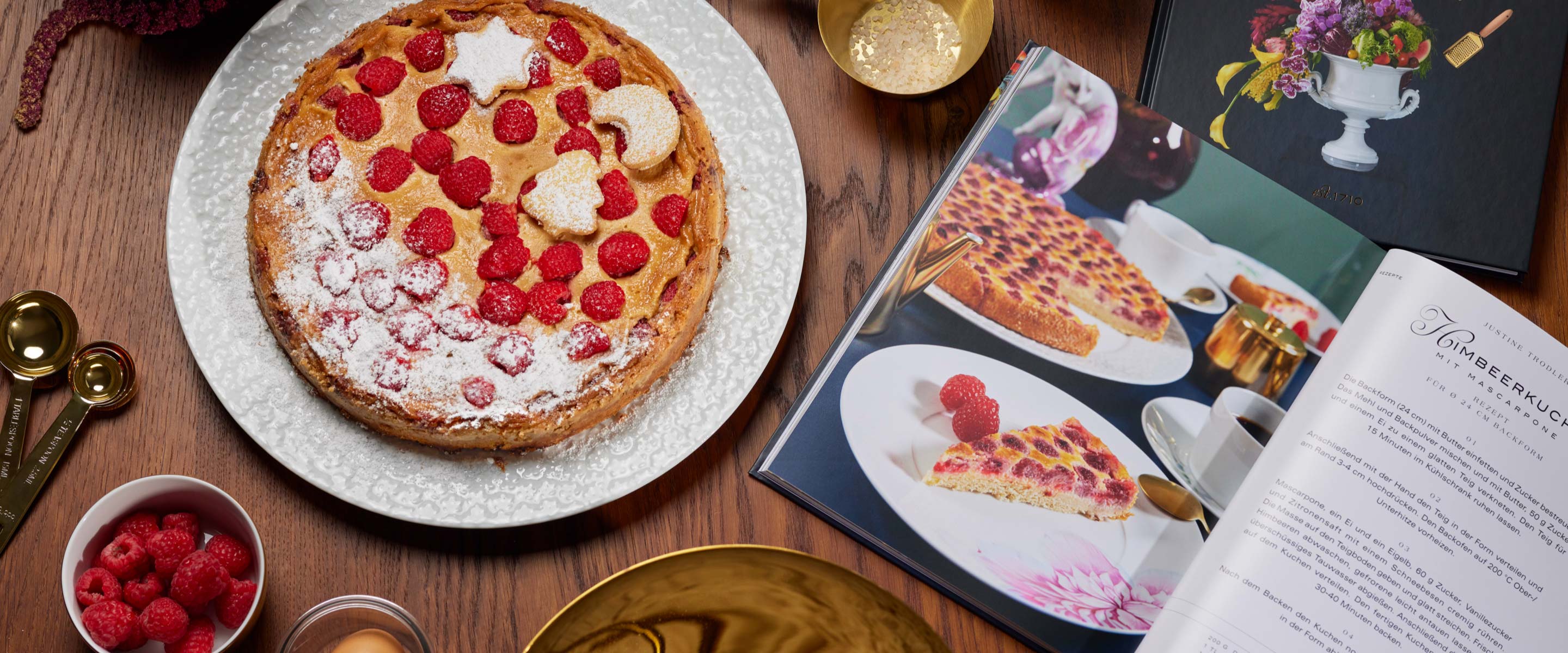 Glück lässt sich am einfachsten in Form von Kuchen mit anderen teilen! Und glauben Sie uns: Der Himbeerkuchen mit Mascarpone ist wahres Glück aus dem Ofen. Dieses Rezept ist Teil des MEISSEN Kochbuches, welches insgesamt 24 süße und herzhafte Rezepte von leidenschaftlich kulinarischen Mitarbeiter*innen unserer Manufaktur bereithält. Der Himbeerkuchen mit Mascarpone stammt von unserer Auszubildenden Justine Trodler. Sie liebt es nicht nur, bei der Arbeit mit den bloßen Händen etwas von Ewigkeit zu erschaffen, sondern zeigt auch beim Kochen und Backen Liebe und Hingabe fürs Detail. Probieren Sie es selbst aus und erleben Sie diesen traumhaften Kuchengenuss – allein oder mit denjenigen, mit denen Sie Ihr Kuchenglück am liebsten teilen wollen.