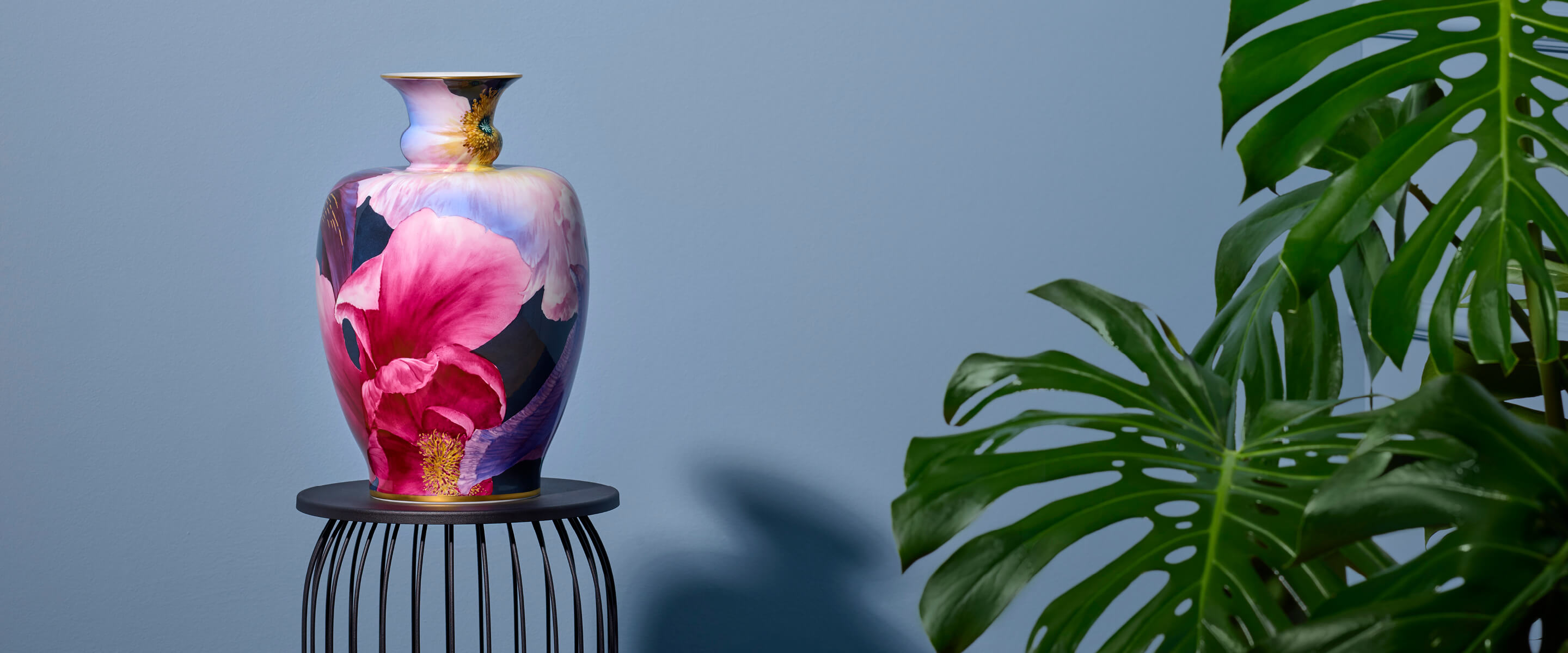 Auch große Vasen und Bodenvasen sind herausragende Beispiele dafür, wie der „Oversized“-Trend in der Inneneinrichtung Anwendung finden kann. Diese Vasen sind nicht nur funktional, indem sie großzügigen Raum für florale Arrangements bieten, sondern sie stehen auch als eigenständige Kunstobjekte im Raum. Kunstvolle Prunkstücke, wie die handbemalte Glücksdrachenvase oder die farbenfrohen Bloom Garden Vasen von Künstlerin Lena Hensel, sind überwältigende Kunstwerke, die in jeden Raum sowohl mit ihrer imposanten Größe, als auch mit der aufwändigen Bemalung für Eindruck sorgen.
