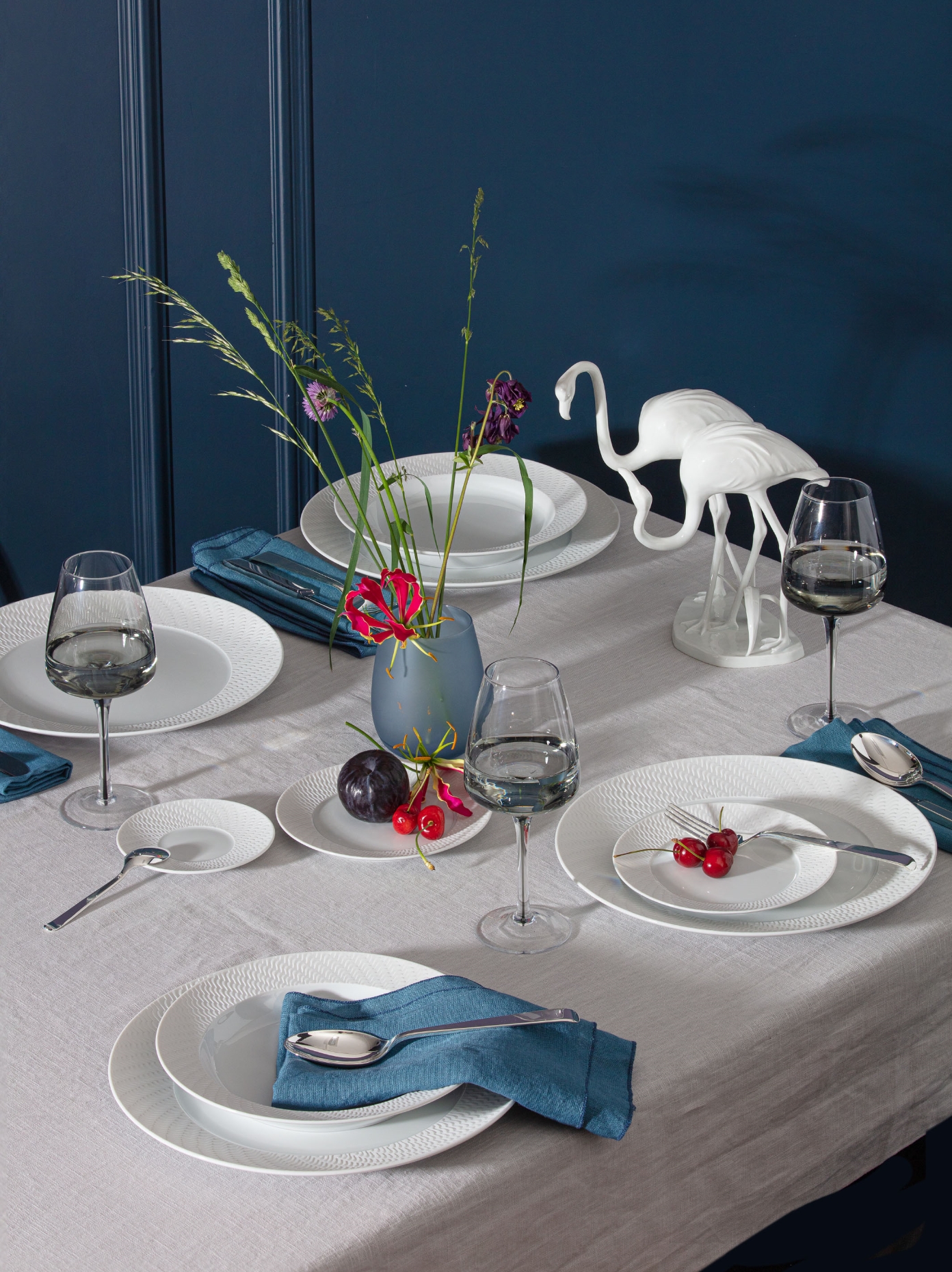 Doch die traditionelle Blumenmalerei war nicht das einzige Genre, das in neuem Glanz erstrahlt und ins Hier und Jetzt geholt wurde. Zwei weitere zeitgenössische Interpretationen in diesem Jahr waren die kobaltblaue Malerei des weltberühmten „Zwiebelmuster“ und die schwungvollen Wellen unserer beliebten „Wellenspiel“ Kollektion, welche auf der modernen Form „N°41“ neu interpretiert wurden.