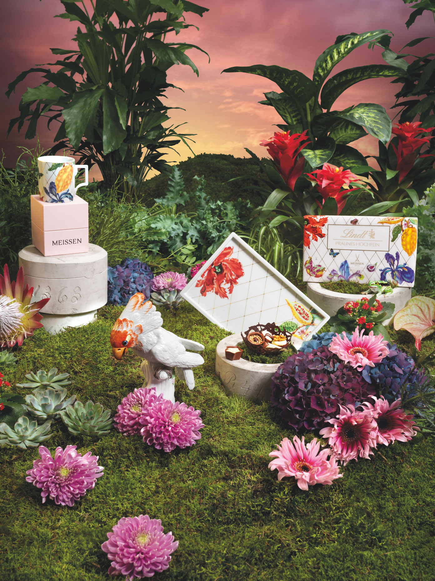 2023 begann für uns mit einem exotisch-sinnlichen Rendezvous von zartschmelzender Schokolade und edlem MEISSEN Design und hat damit einmal mehr bewiesen, dass MEISSEN nicht nur für exklusives Kunsthandwerk, sondern auch für moderne und ästhetische Designs steht. Für eine limitierte Sonderauflage der Lindt HOCHFEIN Pralinés hat MEISSEN die Gestaltung der Geschenkverpackung übernommen und begeisterte damit Kunden in ganz Deutschland. Gekrönt wurde diese außergewöhnliche Kooperation von einem limitierten, handgemalten 12-teiligen MEISSEN® Cosmopolitan Service, welches den Hauptpreis des Lindt Gewinnspiels darstellte.