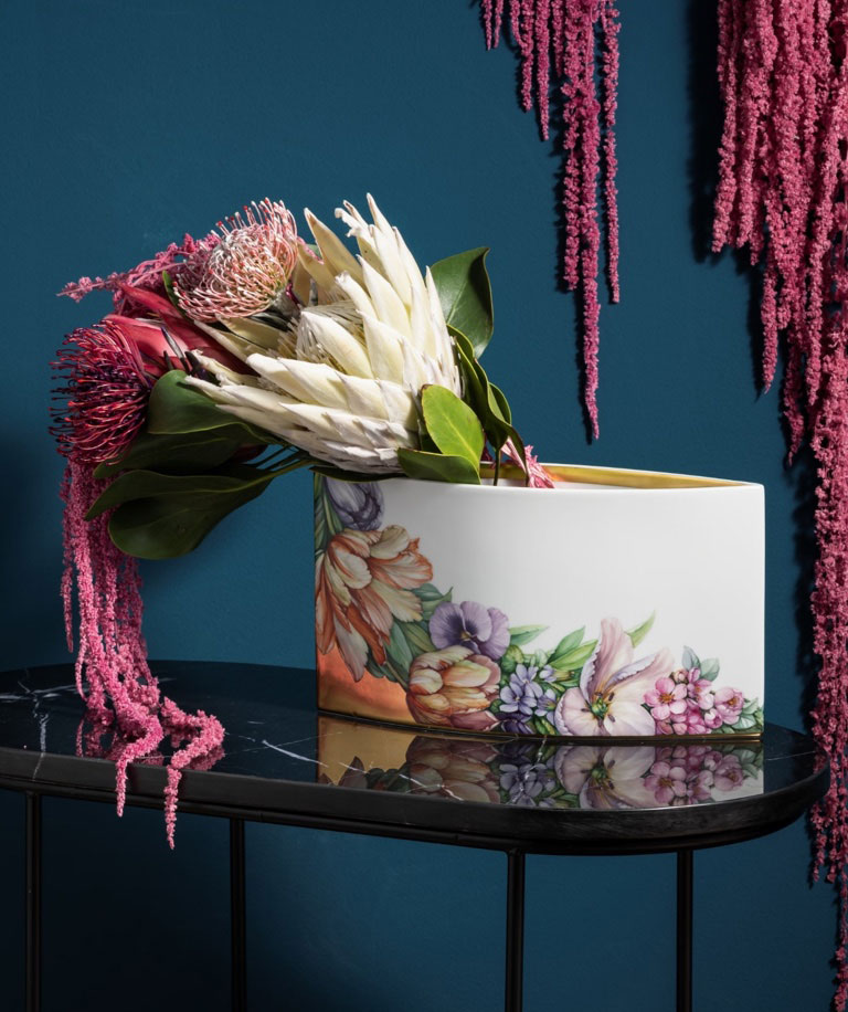 Zusätzlich wurde die Sonderauflage der HOCHFEIN Pralinés um eine exklusive Porzellan-Serie mit Co-Branding im gleichen Dekor ergänzt. Die Serie mit der edlen Schokoladenplatte dem exklusiven Henkelbecher und der stilvollen Espressotasse vermag es, wie kaum eine andere Kollektion, zum sündigen Genuss zu verleiten. Das Prunkstück der Serie: Das 12teilige MEISSEN® Cosmopolitan Service, entführt Porzellan-Liebhaber in eine Welt voller exotischer Sinnlichkeit.