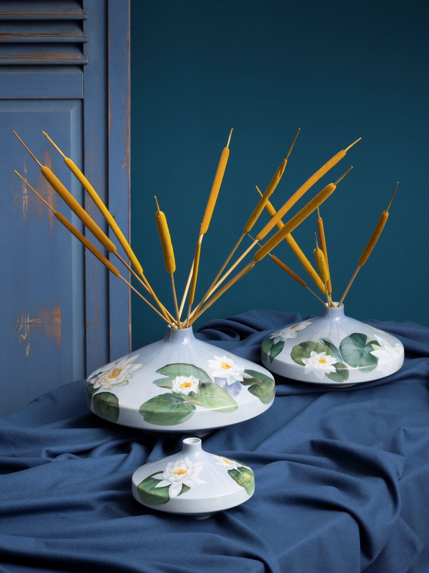 Höhepunkt dieser Kunst bilden die exklusiven Vasen und Wandschalen der Limitierten Meisterwerke. Mit ihnen weitet sich der Blick Meissener Blaumaler von Detailausschnitten auf eine gesamte szenische Unterwasserwelt, in der ein Schwarm treibender Fische, eine Gruppe von Seepferdchen mit sanften Bewegungen durch ihr Universum schweben, zwischen Seegräsern und Algen tänzeln und die sorgenfreie Leichtigkeit maritimen Lebensgefühls in jedes zuhause herbeizaubern.