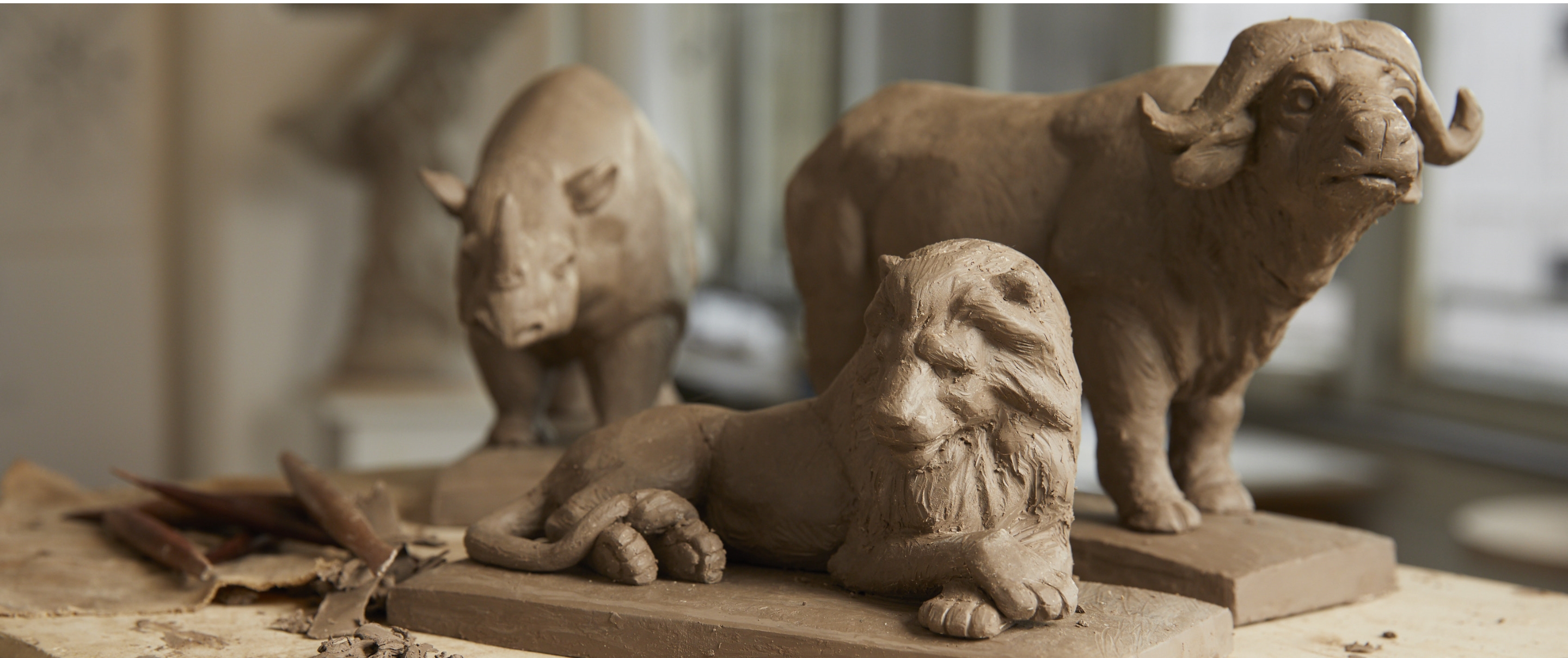 Erstmals in der langen Tradition der Tierplastiken entwickelte Maximilian Hagstotz die „Big Five“ in einer Serie. Zusammengefasst wird die Gruppe über die aufwendige Staffage, deren Linienführung die individuellen Charaktere der Tiere betont. Die eckigere Formgestaltung ist dabei an afrikanische Holzplastiken angelehnt. Seine Figurengruppe diente zudem als Inspiration der Kollektion Hugo Boss x MEISSEN im Dezember 2019, in dessen Rahmen auch limitierte Henkelbecher mit den Motiven der „Big Five“ entstanden. Für den 28-jährigen ehrgeizigen Künstler ist es bei seinen künstlichen Schaffen besonders wichtig, neue Gestaltungswege zu probieren und zu experimentieren. Dabei begleitet ihn immer der eigene Anspruch, besser zu sein als beim Vorherigen.
