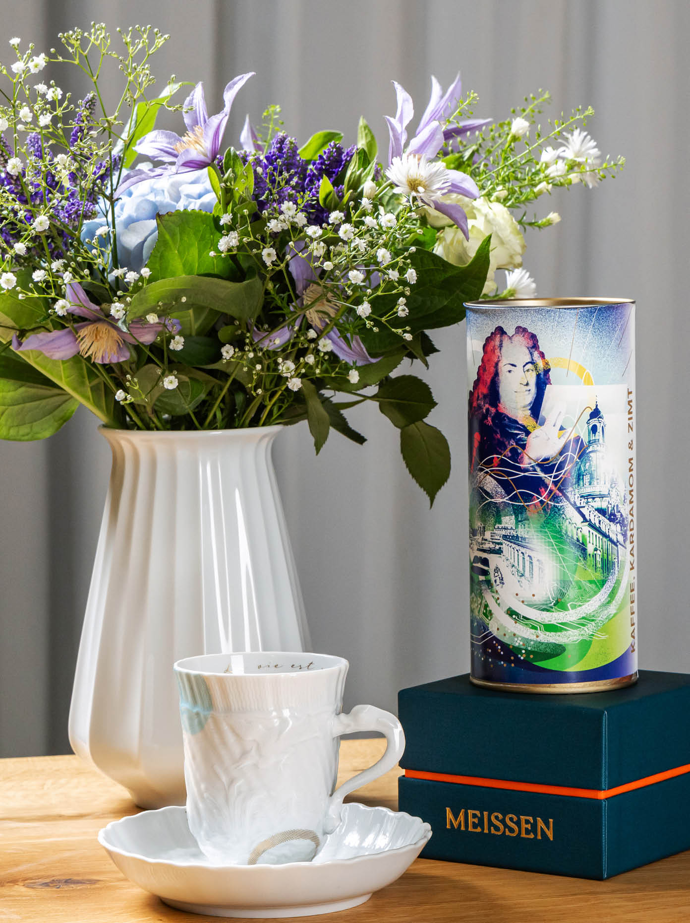 Passend zur schönsten Zeit des Jahres präsentieren MEISSEN und Adoratio Schokoladenkunst ein exklusives Geschenk-Set, das sowohl Liebhaber von Porzellan als auch Schokoladenkenner begeistert. Das Set enthält eine Kaffeetasse aus dem berühmten Schwanenservice von MEISSEN, verziert mit einem speziell entworfenen Adoratio Dekor, sowie feinste Trinkschokolade von Adoratio. Das Schwanenservice von MEISSEN gehört zu den bedeutendsten Porzellanschöpfungen der Manufaktur und ist ein Paradebeispiel für die Barockkunst des 18. Jahrhunderts. Ursprünglich wurde es 1737 für den sächsischen Premierminister Heinrich Graf von Brühl entworfen und war mit seinen über 2.000 Einzelteilen eines der prunkvollsten Tafelservices seiner Zeit. Das Schwanenservice ist besonders für seine detailreichen Reliefs bekannt, die Schwäne, Wasserpflanzen und andere Naturmotive zeigen.
