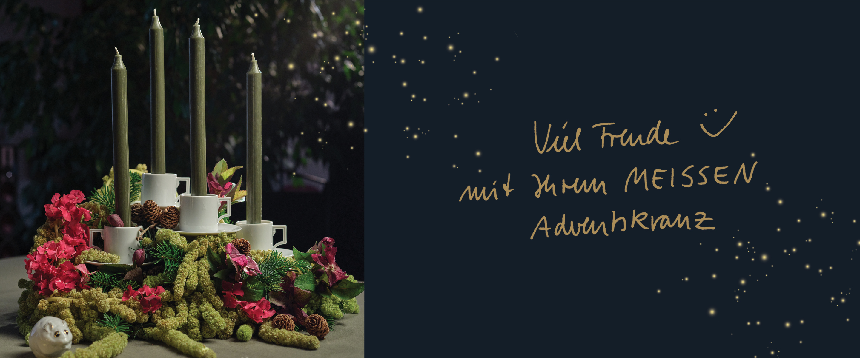 Prüfen Sie, ob alle Kerzen in ihrer Eleganz sicher und stabil stehen. Krönen Sie Ihr weihnachtliches Arrangement abschließend mit kleinen dekorativen MEISSEN Figuren, die Ihrem Adventskranz einen besonderen Zauber für magische Weihnachten verleihen.