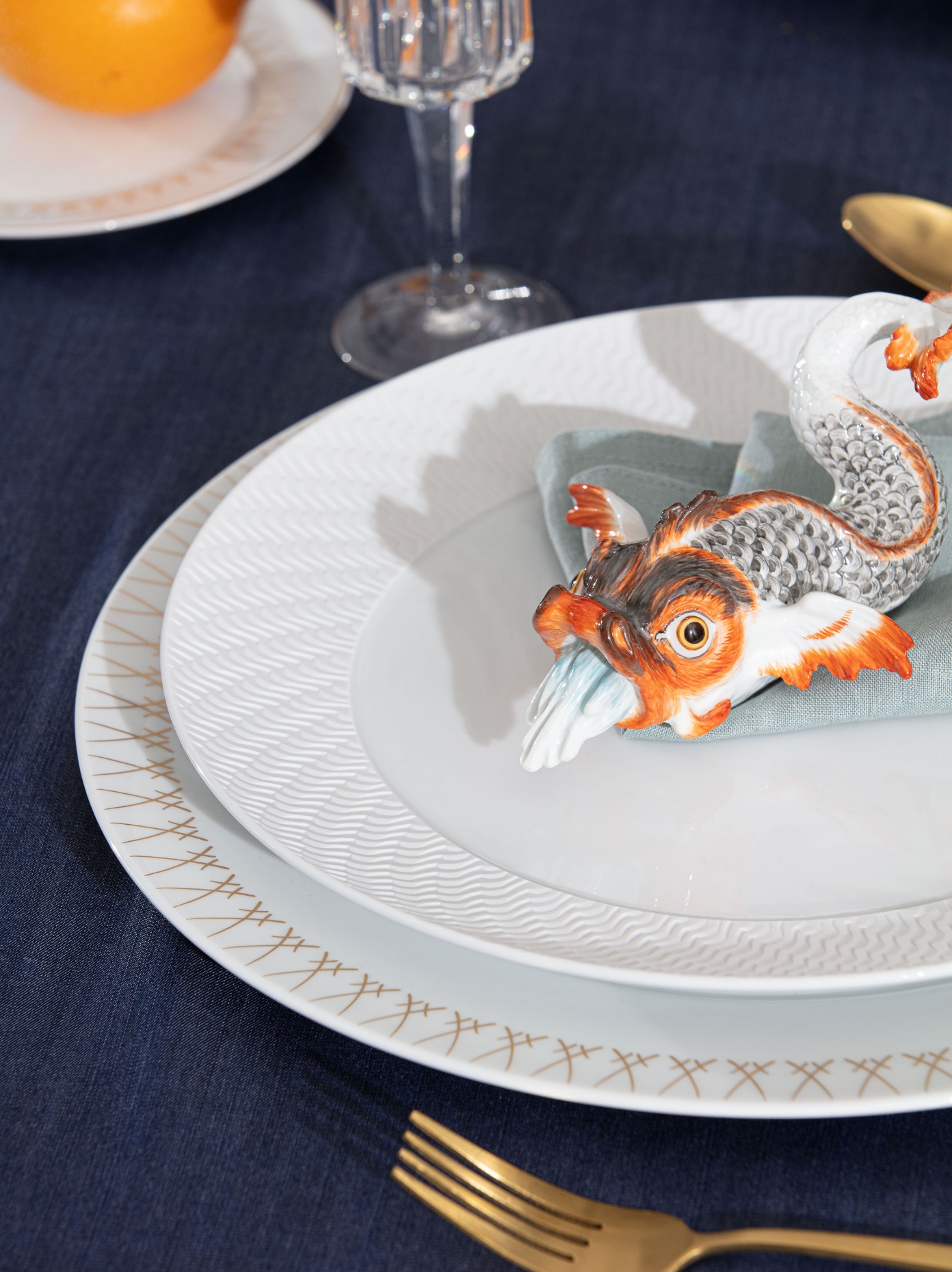 Damit sich jeder auf seiner Weise verwirklichen kann, bietet unsere Tellerform „N°41“ die ideale Bühne. Dieses zeitlose Design passt perfekt in jedes Interieur und lässt sich zugleich mit seinen vielseitigen Dekoren nach Herzenslust kombinieren. Auf „N°41“ haben wir neun verschiedene historische MEISSEN Dekore neu interpretiert. Vom verspielten „Royal Blossom“, ikonischen „Zwiebelmuster“ über das berühmte Markenzeichen „Swords“ bis hin zum beliebten „Wellenspiel“ lassen sich die Interpretationen nicht nur perfekt untereinander, sondern auch mit unseren anderen Tafelservices kombinieren. Diese enorme Vielfalt ist ganz im Sinne des „Mix & Match“ – Tradition und Moderne, Farben mit Strukturen und Mustern gekonnt zu verbinden.