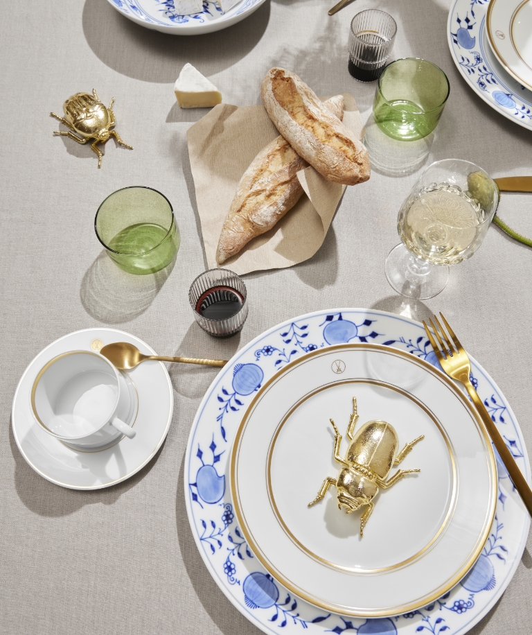 So mannigfaltig die Speisen sollten dabei auch die Porzellane sein – puristische Formen und moderne, leichte Dekore im individuellen Mix & Match. Wie etwa die Kollektion „Giant Bloom“, die in An- und Ausschnitten angedeutet, verschiedene Blumenarten auf der breiten Tellerfahne der Form „MEISSEN® Cosmopolitan“ in Szene gesetzt, in Kombination mit dem filigranen „Wellenspiel Relief“ oder der Dekorikone „Zwiebelmuster“, die beide auf der modernen Form „N°41“ ihre Bühne erhalten. Werden Sie zum kreativen Gestalter Ihres ganz persönlichen Picknickarrangements.