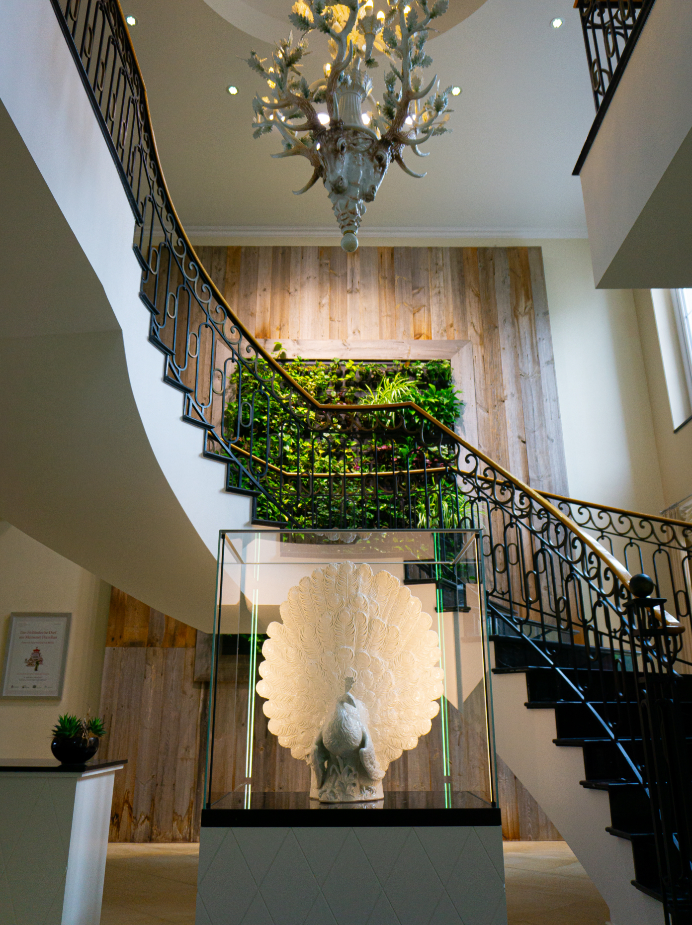 Mit dem Aufstellen der Tierplastiken aus Porzellan in der hochmodernen Hotelanlage sowie der Adaption der ikonischen Werke auf sagenhaft schönen Wandinstallationen ist auf eindrucksvolle Art und Weise eine Brücke von der Tradition zur Moderne geschlagen worden. Die eingesetzten Figuren, vom radschlagenden Pfau, über den Edel-reiher und den Ara bishin zum Affen mit Schnupftabakdose, sind ein wichtiges Stück MEISSEN-Geschichte, welche bis in das frühe 18. Jahrhundert hineinragt. Viele dieser Figuren entstammen Originalen, die ursprünglich von Johann Joachim Kaendler, einem der bedeutendsten Porzellanmodelleure MEISSENs geschaffen wurden. Von August dem Starken höchstpersönlich als Hofbildhauer und Modellierer in der Porzellan-Manufaktur angestellt, begann Kaendler frühzeitig damit, den Traum des Königs nach einem Schloss aus purem Porzellan wahrzumachen. So entstanden ab 1731 zahlreiche Tierplastiken für das japanische Palais, welche nun für die Kooperation mit dem Naturresort & Spa Schindelbruch nachgebildet wurden.