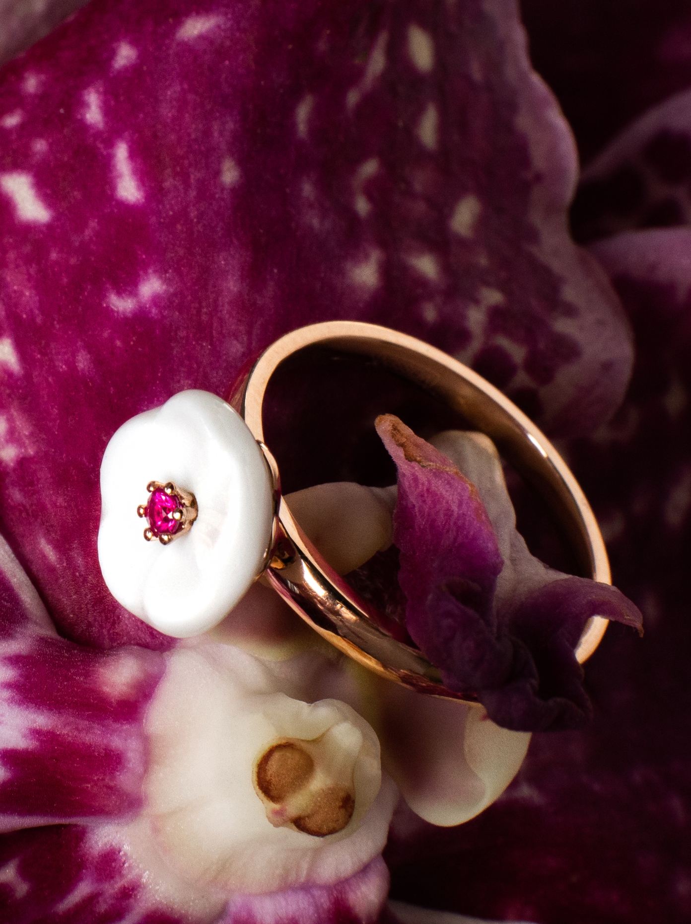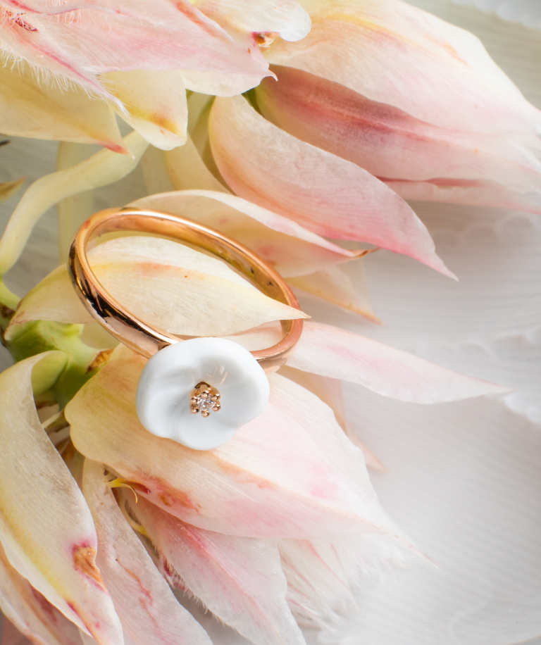 Eines der beliebtesten Schmuckstücke aus Porzellan sind die „Schneeballblüten“ welche bis heute zu den herausragendsten Dekoren der Manufaktur MEISSEN gehören. 1739 auf Geheiß von König August III. für seine Gemahlin Maria Josepha kreiert, wurden die Porzellanblüten fast 300 Jahre später als Schmuckstücke mit Gold und Diamanten neu interpretiert. Die Schneeballblüten, so filigran und grazil, finden Sie nun weiterentwickelt in unserer „1739 Royal Blossom“ Kollektion in vielen verschiedenen Varianten wieder – ob mit eingelassenem Saphir, Rubin oder Brillanten – Entdecken Sie eine ganz besondere Liebesgeschichte und erzählen Sie diese weiter.