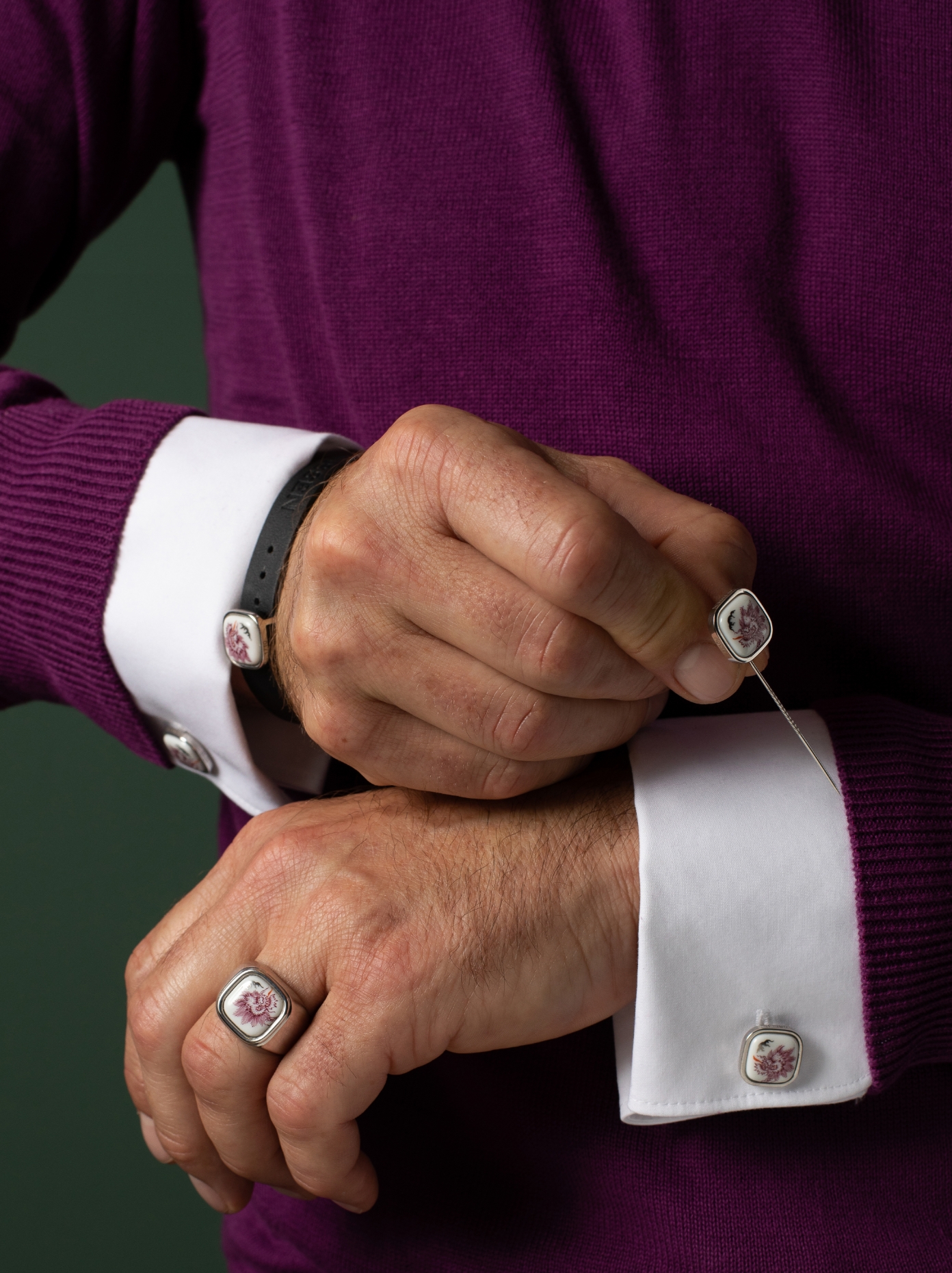 MEISSEN ist außerdem berühmt dafür historische Motive und Dekore mit zeitgenössischer Formsprache zu verbinden und hebt damit Schmuck aus Porzellan auf ein ganz neues Level. Mit der neuen Interpretation des ikonischsten Dekors der Manufaktur, gibt es kaum ein besseres Geschenk für die Herren. Der chinesische „Ming-Drache“ steht für übernatürliche Weisheit, für den Geist der Veränderung, für Sonne, Licht oder die männliche Kraft des Yang und ist heute Element verschiedener Schmuckstücke. Im neuen Glanz schmückt der symbolkräftige „Ming-Drache“ in Schwarz oder Purpur zahlreiche Stücke unserer Herrenschmuck-Kollektion und kommt im Zusammenspiel mit den klaren Formen aus Meissener Porzellan besonders elegant zur Geltung.