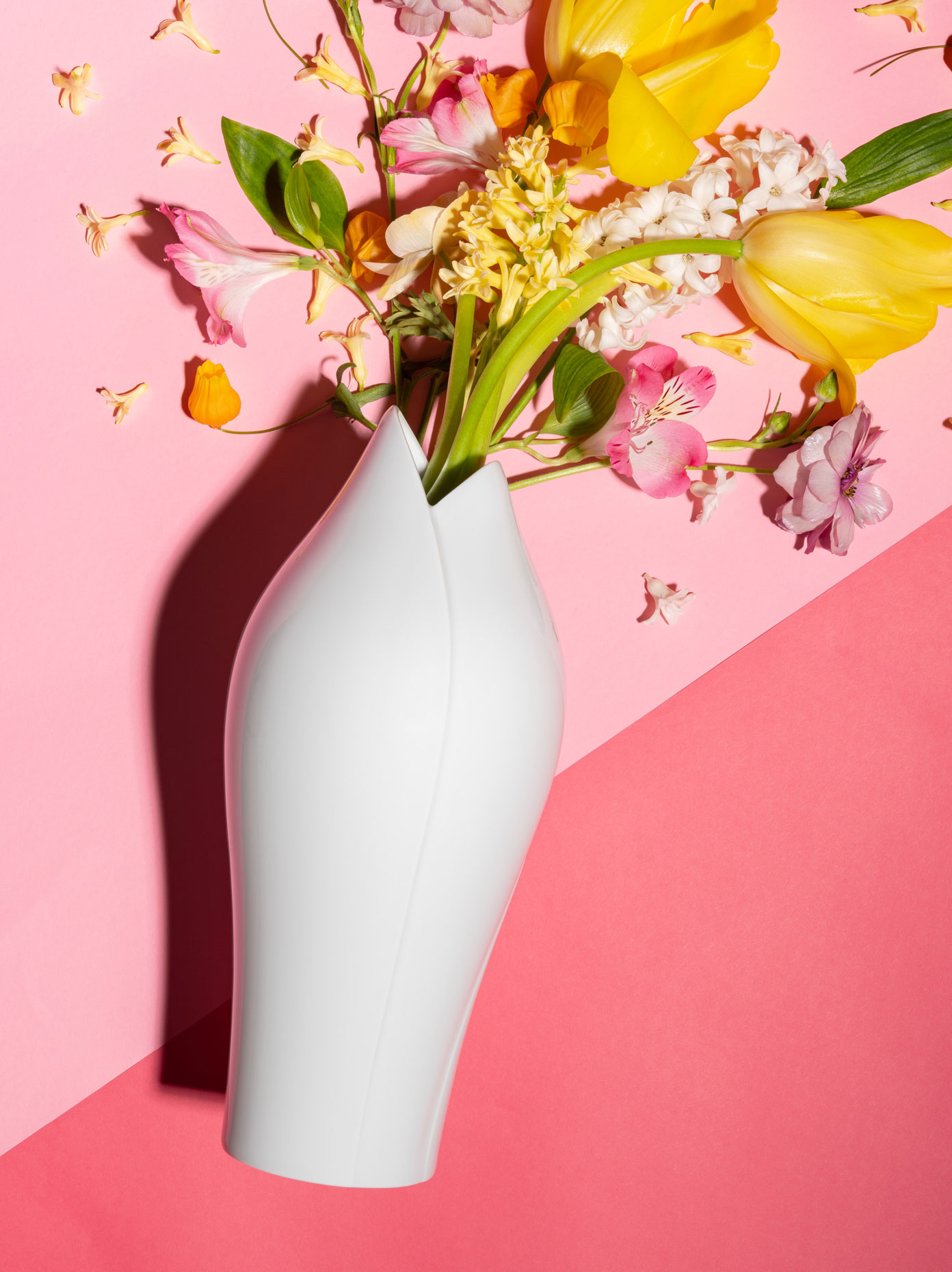 In manchen Fällen ist es ratsam, Blumen und Vasen in einer ansprechenden Vielfalt zu einer beeindruckenden Gesamtkompositionen zusammenzustellen - und manchmal ist weniger einfach mehr. Limitierte Meisterwerke, wie die “Vase Exotic 1“ sind wahre Prunkstücke der Porzellankunst und strahlen eine derart eindrucksvolle Präsenz aus, dass diese auch allein beeindruckt. Die "Vase Antartica" wiederum eignet sich perfekt, für komplexe Arrangement mit zahlreichen Vasen und vielfältigen Blumen. Kein Wunder, denn ihre einzigartige Form wurde von Pinguinen inspiriert - und diese treten schließlich in Kolonien auf uns sind ein Symbol für Gemeinschaft und Zusammenhalt.