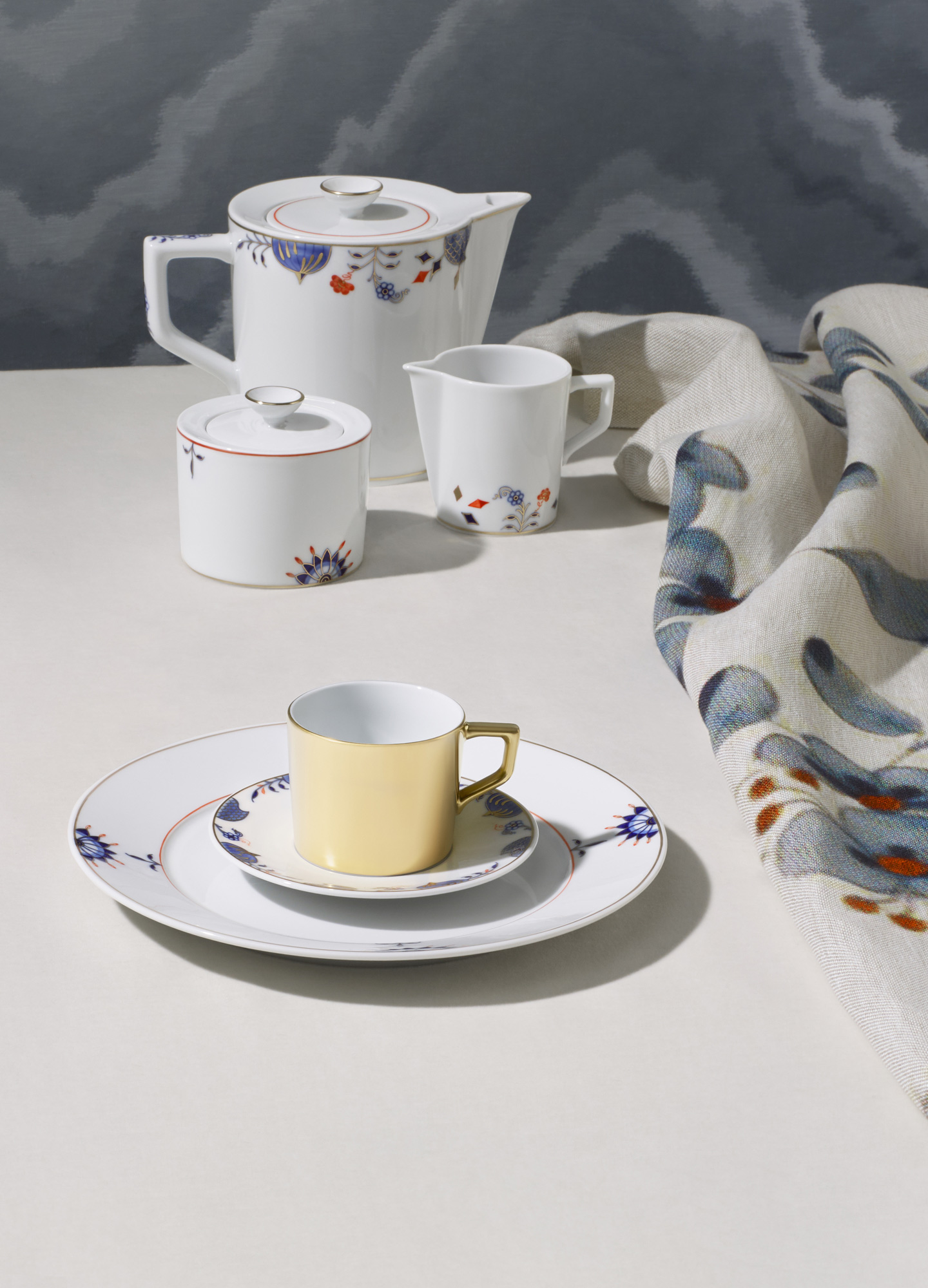 In "Noble Blue" lebt das traditionsreiche Zwiebelmuster in zeitgemäßer Form weiter und veredelt die neue puristische Form "N°41". In der Vielseitigkeit seiner Einzelteile ermöglicht der variantenreiche Dekor je nach Anlass individuelle Kombinationsmöglichkeiten, die Form "N°41" erlaubt zudem das Zusammenstellen einer Untertasse mit drei verschiedenen Obertassen. Alle 27 Einzelteile der "Noble Blue" Kollektion sind stapelbar und spülmaschinenfest.