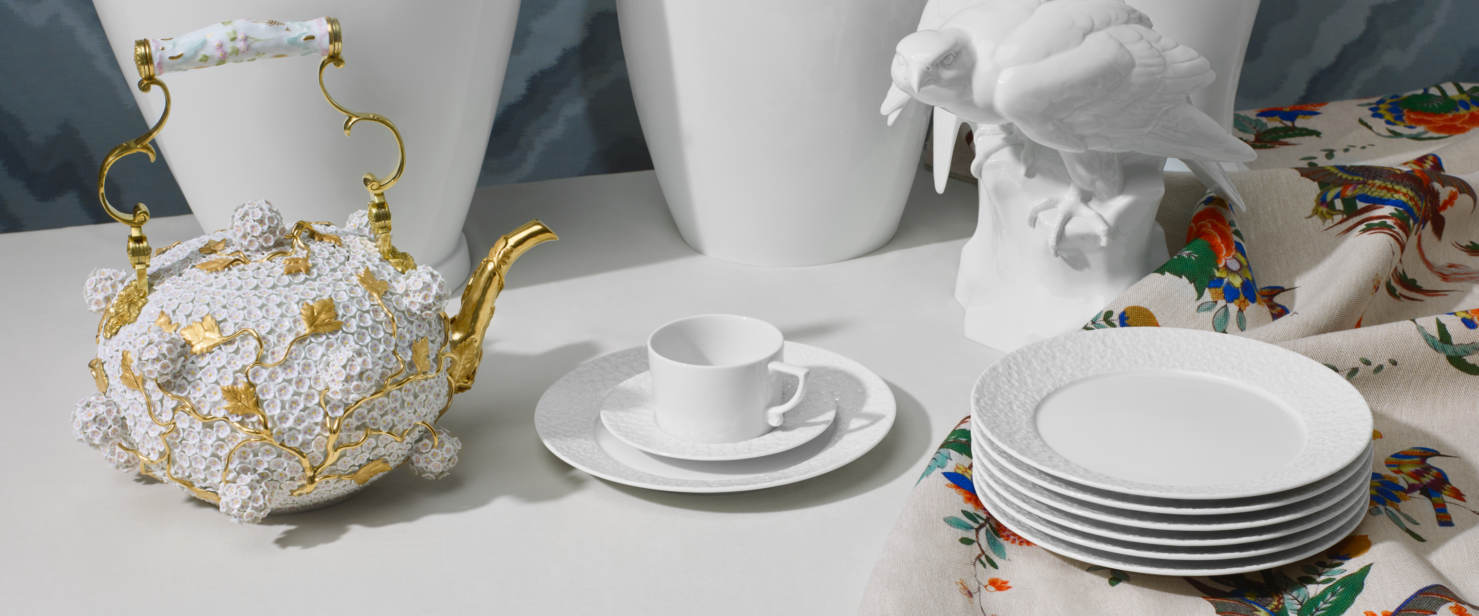Bis heute gehören die "Schneeballblüten" zu den herausragenden künstlerischen Arbeiten der Porzellanmanufaktur Meissen und zu den Ikonen der Porzellankunst. Nur der hochwertige Werkstoff der Manufaktur ermöglicht es dem Meister Modelleur Johann Joachim Kaendler im 18. Jahrhundert detaillierte plastischen Strukturen, wie die der filigranen Porzellanblüten, auf engstem Raum zu platzieren. Mit seinen Modellierkünsten sowie später als künstlerischer Leiter prägt Johann Joachim Kaendler entscheidend die künstlerische Blütezeit der Manufaktur ab 1730 und ihren Ruf. Dabei gelingt es ihm nicht nur, der figürlichen Plastik Leben einzuhauchen, sondern auch dem gemeinen Gegenstand, wie Teekanne, Vase, Dose oder Terrine. Seine Arbeiten wurden zum Maß der Dinge am Hof August des Starken, Kurfürst von Sachsen, und an vielen Königshäusern begehrte und wertgeschätzte Gegenstände. Das "Schneeballblütenservice" entsteht schließlich auf Geheiß August III. Anknüpfend an die reiche kunsthandwerkliche Tradition der Manufaktur wird der ikonische Dekor für "Royal Blossom" auf der puristischen Serviceform "N°41" erstmals neu interpretiert.