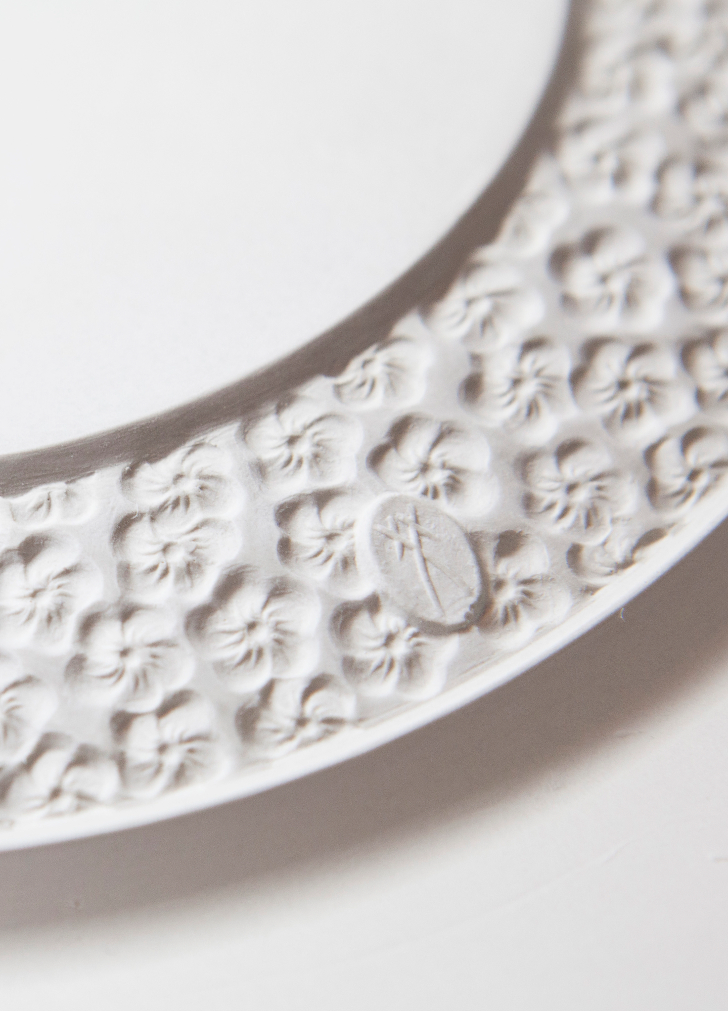 „als feines relief verleihen die ‚schneeballblüten‘ der zeitlos puristischen form ‚n° 41‘ eine filigrane haptik und eleganz, von außergewöhnlichem detailreichtum und akkuratesse.“