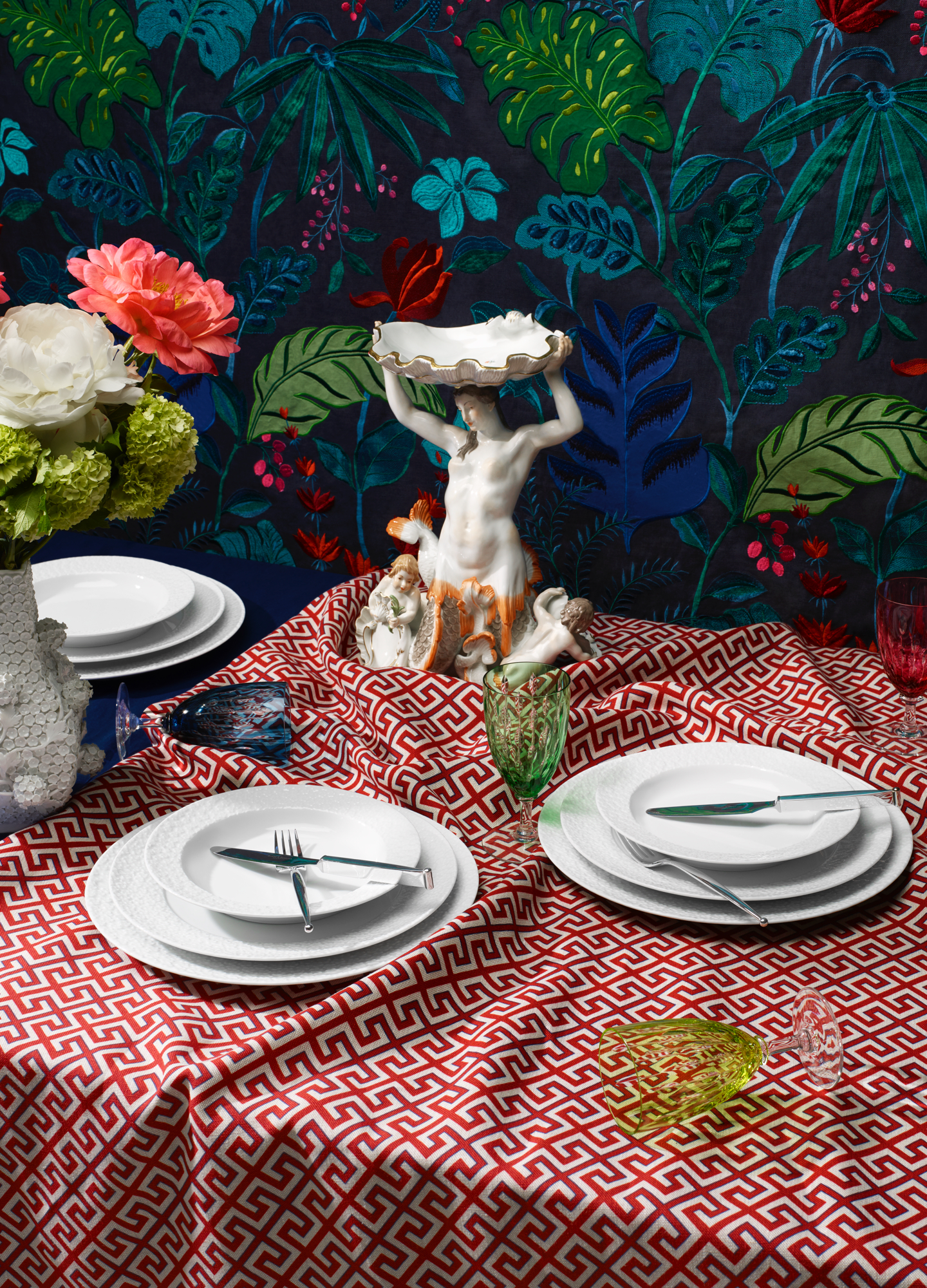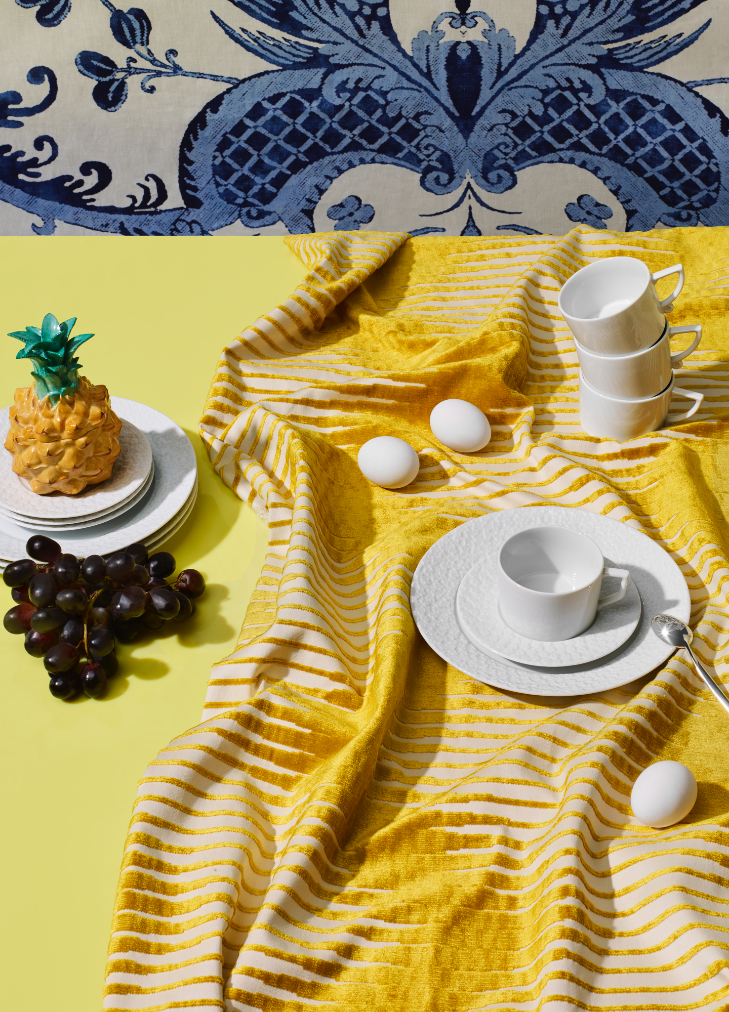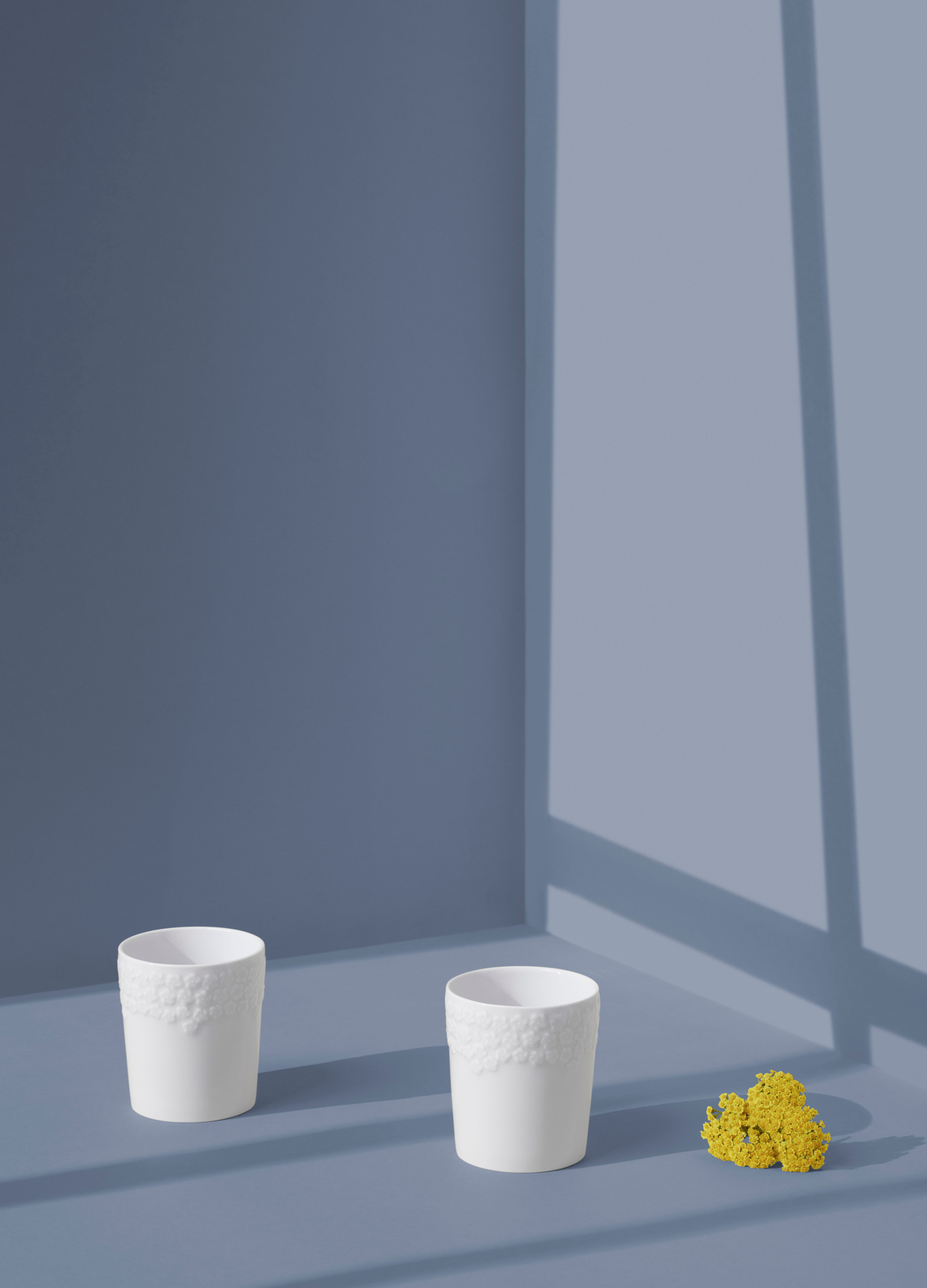 Der als Relief zeitgemäß interpretierte "Schneeballblüten" Dekor verleiht der puristischen Serviceform "N°41" eine filigrane Haptik und Eleganz, die jedwedem gedeckten Tisch eine modern klare Akkuratesse verleiht. Dem Zeitgeist entsprechend sind die 29 Einzelteile der Kollektion stapelbar und spülmaschinenfest. Eine Besonderheit ist die individuelle Kombinationsmöglichkeit einer Untertasse mit drei verschiedenen Obertassen, je nach Anlass oder Vorliebe.