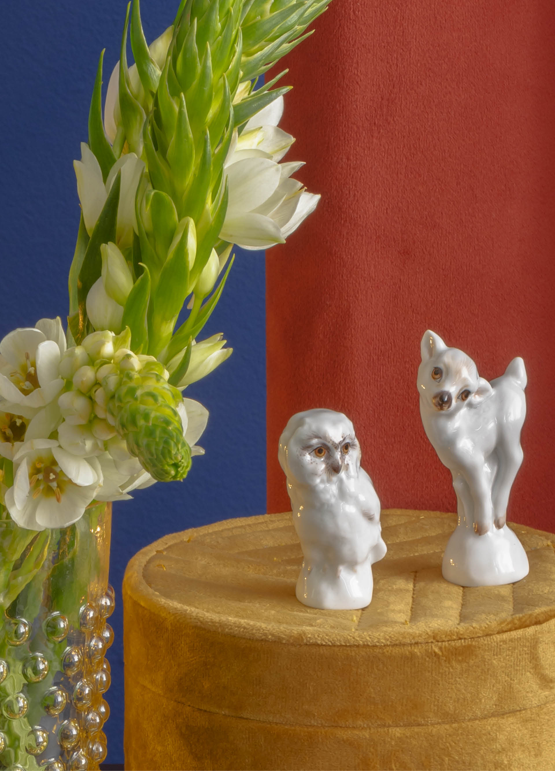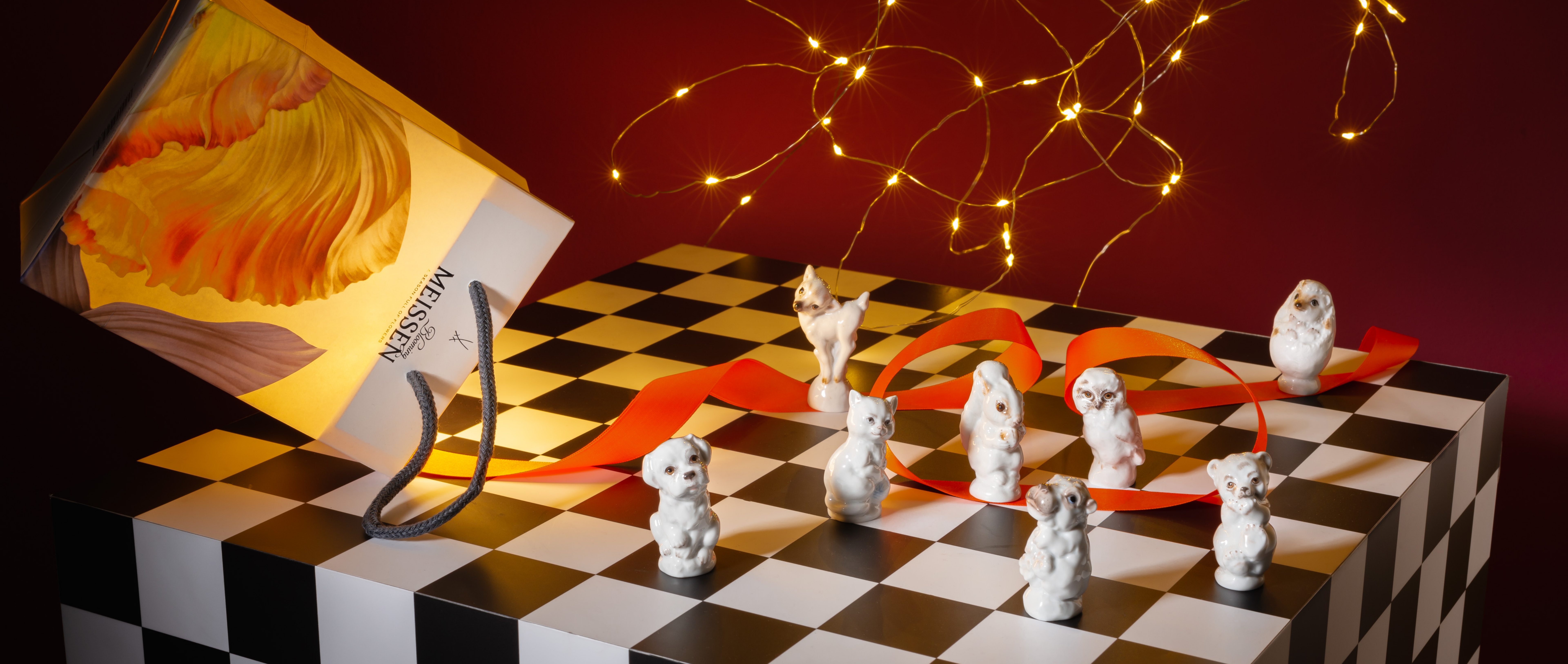 Mit der „Tierkinder“ Sammelserie präsentiert MEISSEN insgesamt fünfzehn detailreich ausgearbeitete Miniaturen, die sich von der Meissener Tradition naturalistischer Tierdarstellungen lösen. Stilisiert-verniedlichend erhalten die Tierformen in den Malerwerkstätten eine von Hand aufgetragene Staffage in zurückhaltenden Pastelltönen. Charakteristische Züge von Affe, Hase, Katze oder Hund werden dabei in feinen Pinselstrichen hervorgehoben – eine partielle Staffage, die in künstlerischen Dialog mit dem glasigen Schimmer und dem strahlenden Weiß des Meissener Porzellans tritt. In jeder Figur lenken Farb- und Formensprache die Aufmerksamkeit auf die großen, besonders ausdrucksstark ausgearbeiteten Augen des Tieres. Aus ihnen spricht der lieblich-kindliche Charakter dieser einzigartigen Sammelserie.