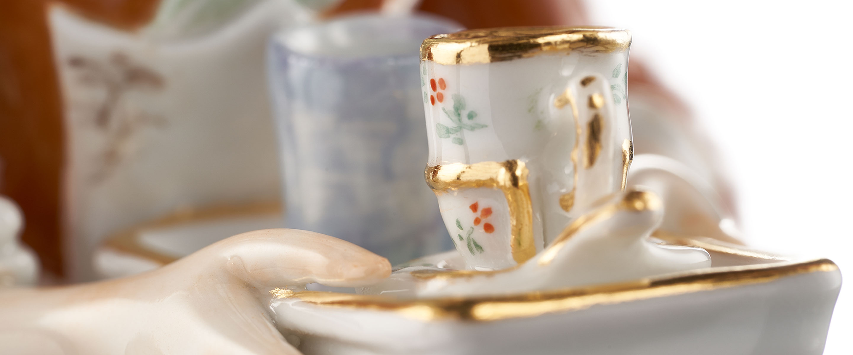 The unique depiction of the "Chocolate Girl" served as inspiration for many art creators, including the Meissen artists. In 1835, they brought the painting to life with a stunning porcelain figure and, as in Liotard's original work, delicate pastel colours dominate the Meissen figure. The girl's bell-shaped skirt, typical of the period, and her delicate bonnet are in subtle pastel shades. By adding delicately softly painted floral ornaments to the apron, MEISSEN gives the "Chocolate Girl" her very own touch. The figure is composed of a total of 12 shapes. During the staffage she gets her friendly facial expression and her finely elaborated wardrobe. For example, two firing passes with subsequent painting are necessary to accurately depict the folds in the beautiful blue skirt.