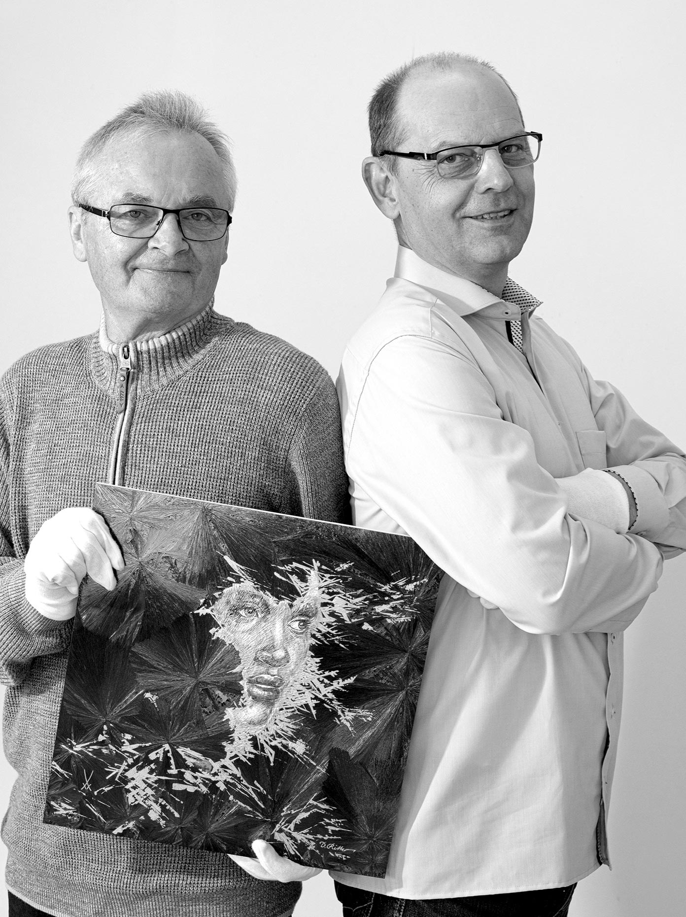 It was a passion for experimentation that brought the two Meissen artists Horst Gottschaldt (born 1949) and Detlef Ritter (born 1961) together. Their tenacity, love of the material and belief in each other have now helped them create new crystal worlds for the Manufactory. The upshot: a sensational symbiosis of technical crystalline glazes and meticulously executed porcelain painting whose captivating effects materialised following months of testing in the laboratory. Only very few craftspeople are equipped for such a demanding challenge, one that is frequently beset by failure. The artist Horst Gottschaldt used porcelain plaques as a working surface to which he applied pasty mixtures of various porcelain ingredients, mineralogical oxides and carbonates. The ingredients are mixed to differing formulae as a function of the colour it is hoped to create. With the shape, size and variety of the crystals formed being wholly unpredictable, the outcome of a lengthy period of dedicated firing at up to approx. 1,300°C is only known once the kiln door is opened. In the present case, the crystals have turned out to be of a very large, unique kind, yielding an amorphous visual design with no set order or structure.