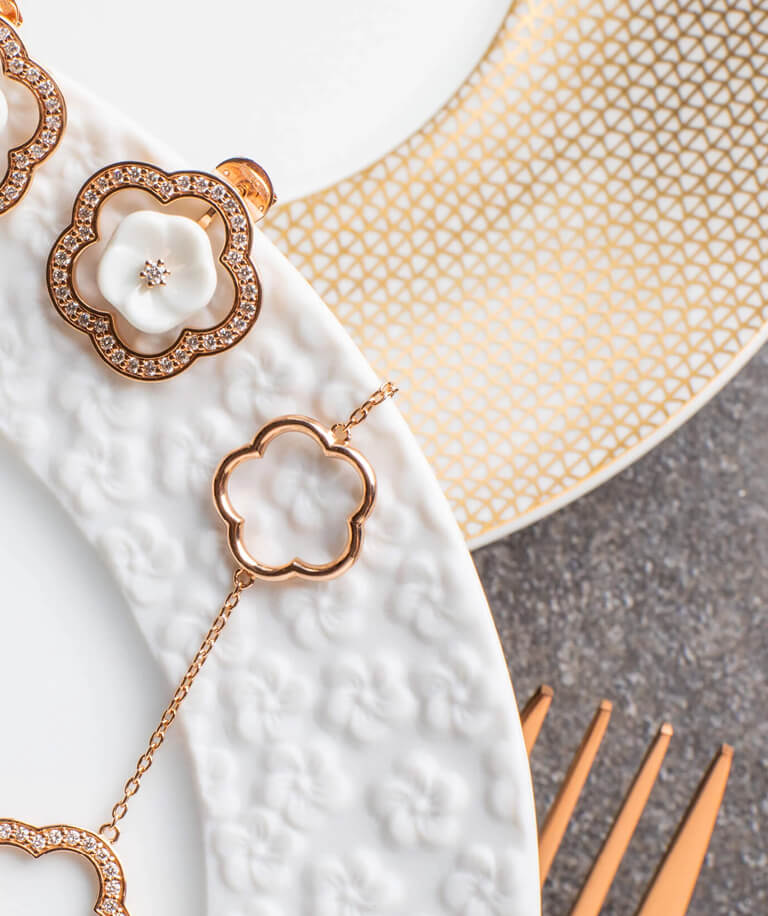The “Pearl Collection” is an ode to the natural beauty of pearls. Inspired by their mother-of-pearl sheen, the porcelain pearls in this collection reflect light in a unique way. They represent richness, luxury and perfection, reminding us that true beauty comes from within.