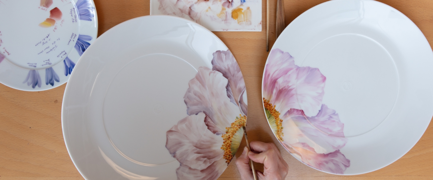 Since time immemorial, plants and flowers have accompanied the lives of humans and developed a rich trove of symbolic meanings throughout the ages. The first evidence of flowers and plants can already be found in Egyptian hieroglyphics. The first book on a language of flowers was published in 1819 by the Frenchwoman Charlotte de Latour, who derived each flower’s respective meaning from its appearance, scent and occurrence – according to whom the anemone stands for devotion and tenderness, the hyacinth for benevolence, delphinium on the other hand for superficiality, the sunflower for wealth. In the 18th and 19th centuries, the language of flowers finally became a lingua franca across Europe. First developed at this time, naturalistic flower painting at MEISSEN has since matured to the highest perfection as a genre in its own right. Flora and fauna are immortalised on porcelain with great artistic skill and in ever new variations: As large-scale paintings, as seen on the new "Giant Bloom" service, in iconic patterns such as the "Strewn Flowers", as lush bouquets or delicate tendrils on vases, plates, mugs, figurines and even tree ornaments.