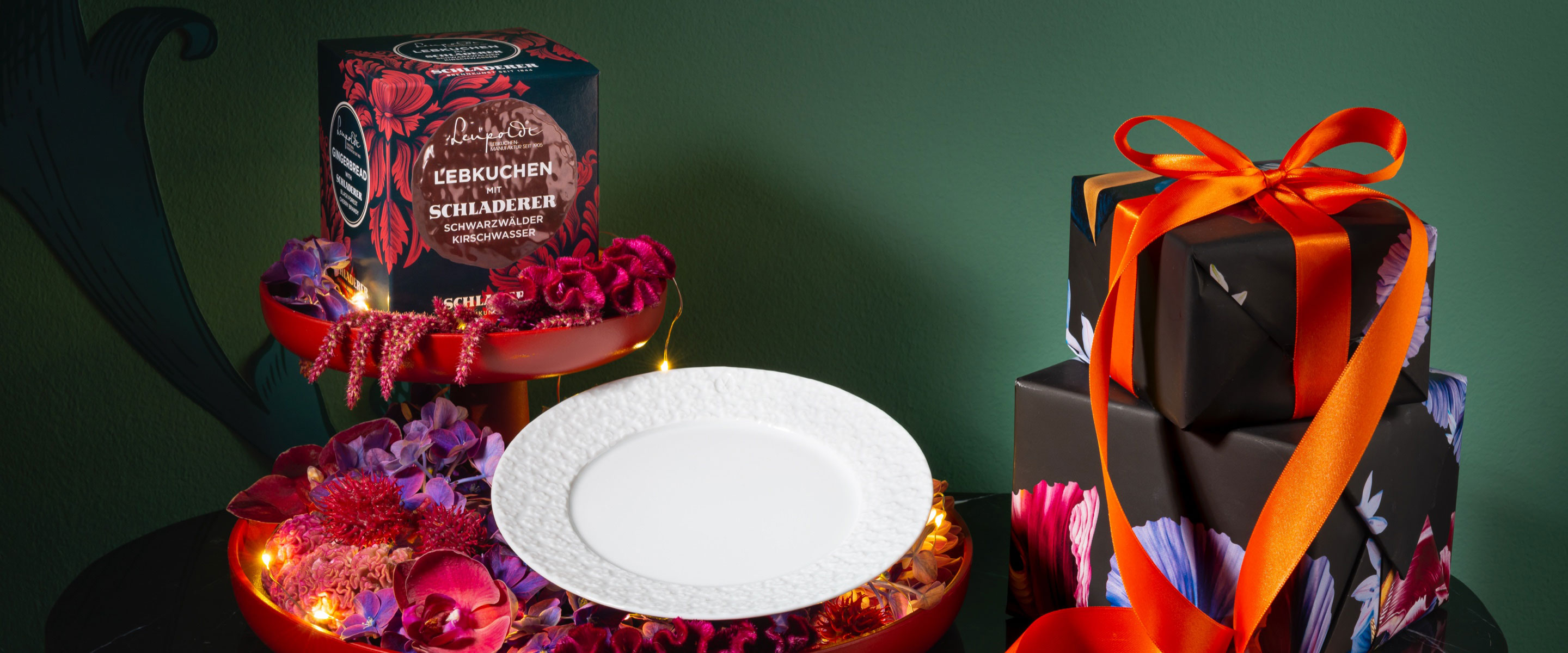 Enjoyment for all the senses is also provided by the numerous other gourmet sets that you can purchase in our stores and our online shop: For example, we warmly recommend the gift sets from the long-standing collaboration with the Schloss Proschwitz winery, the oldest privately run vineyard in Saxony: an exquisite Pinot Blanc is paired with various artfully designed porcelain stoppers, a tasty Balsamic with the modern salad and pasta plates from the Cosmopolitan collection, or even an exclusive pear brandy with small porcelain brandy tumblers