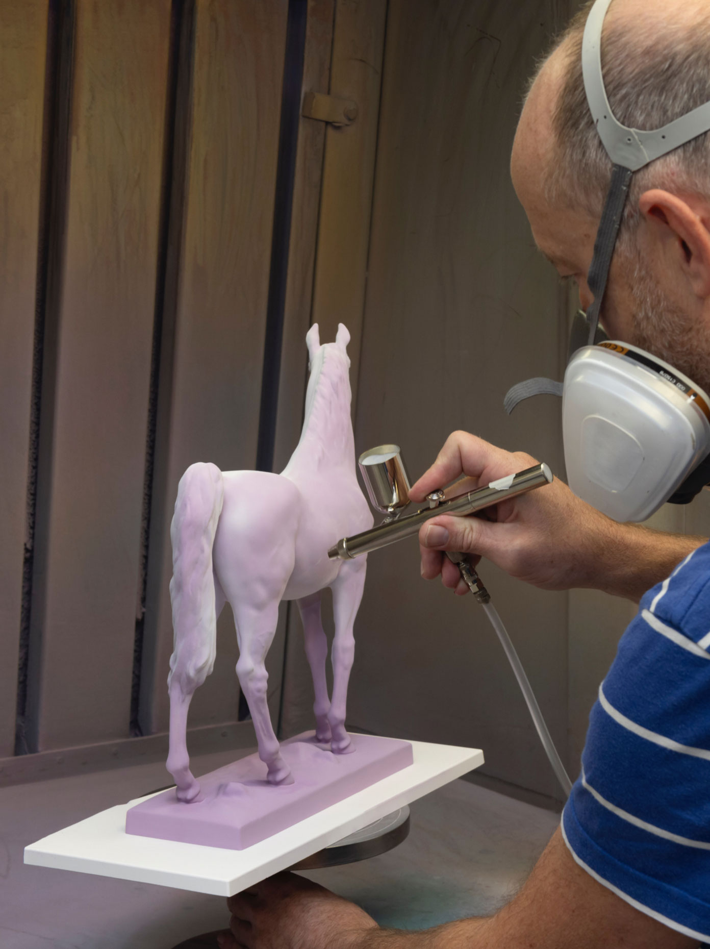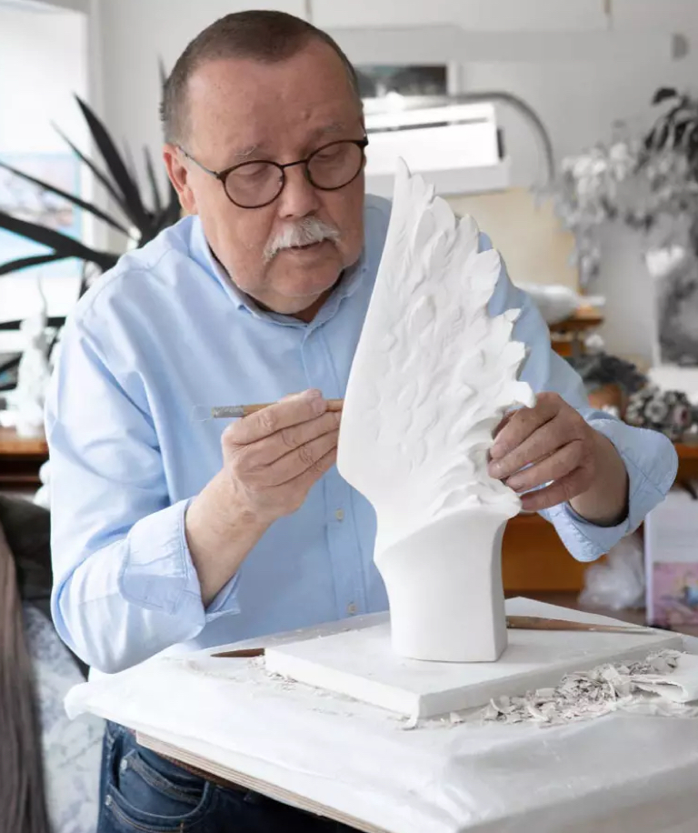 Over the centuries, other highly talented modellers were to follow in the footsteps of Kirchner and Kaendler and expand the portfolio of MEISSEN porcelain figurines with countless breathtaking animal sculptures - whether Paul Walther, Erich Oehme or the great Jörg Danielczyk. After Danielczyk had already been working for the manufactory for nine years, the master modeller at the time, Peter Strang, chose him at random from a number of manufactory artists to model a horse. Not just any horse, but a real equestrian celebrity: the Hessian mare Halla, who won gold several times at the Summer Olympics together with Hans Günter Winkler. Danielcyk managed to fully penetrate and reproduce the character of the animal model, so that the enthusiastic Peter Strang took him on as a pupil and moulded him into the great modeller that he was until his retirement in 2017. He was also able to demonstrate this talent in 2013 with the creation of the noble Arabian, which now served as the model for the three purple prizes of honour at the International Festival Hall Riding Tournament in Frankfurt.