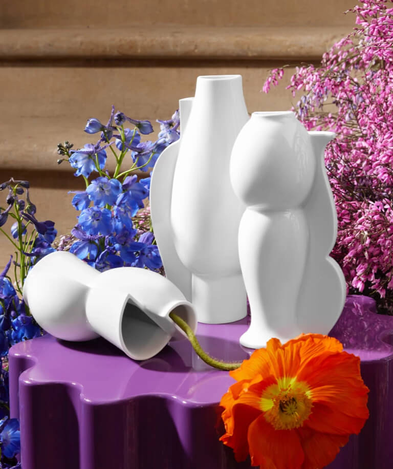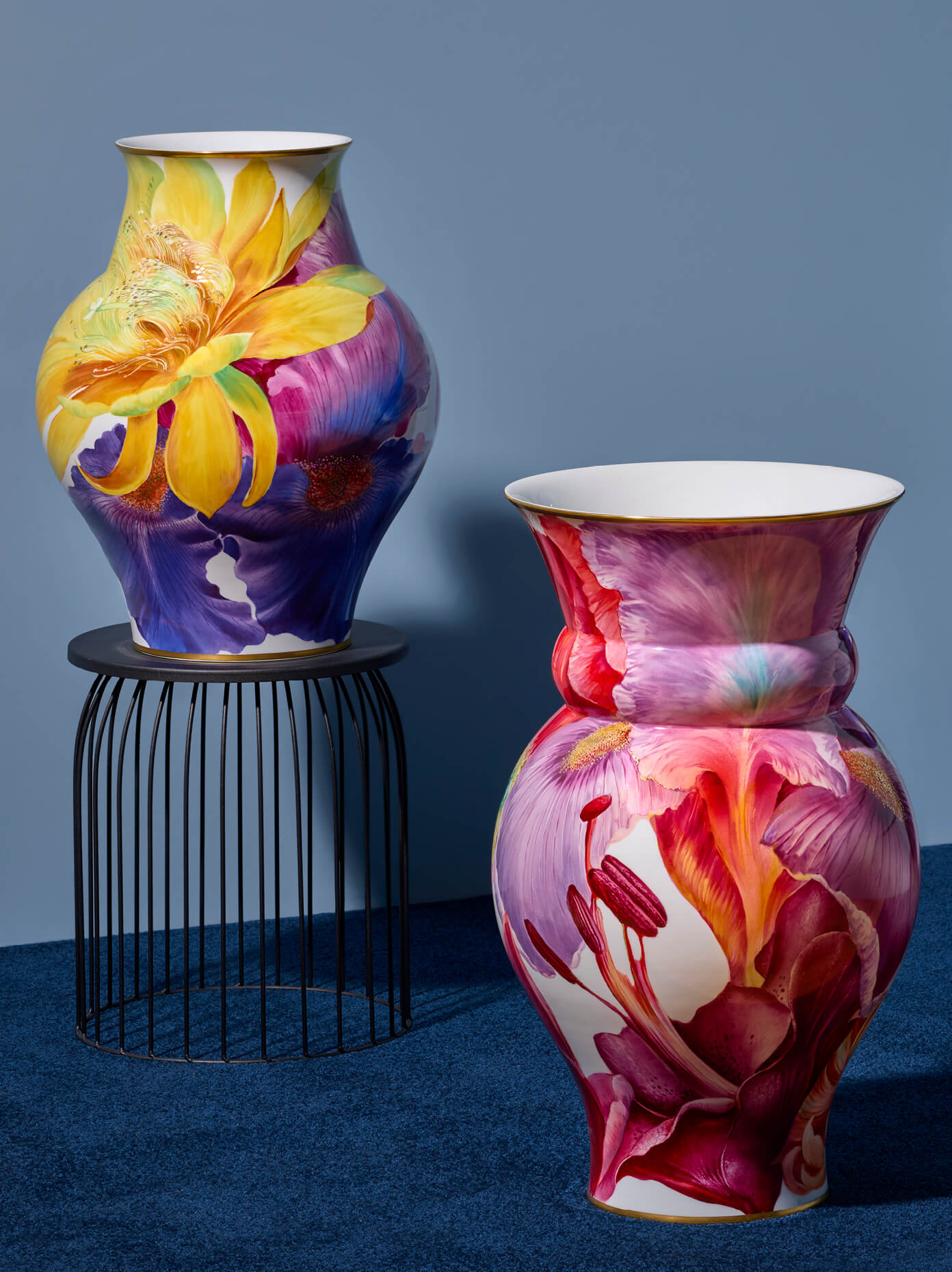 With large vases and floor vases, we also have excellent examples of how the "oversized" trend can be used in interior design. These vases are not only functional in that they offer generous space for floral arrangements, but they also stand out in the room as objects of art in their own right. Artful showpieces, such as the hand-painted Fortune Dragon vase or the colorful Bloom Garden vases by artist Lena Hensel, are stunning works of art that make an impression in any room with their imposing size as well as their elaborate painting.