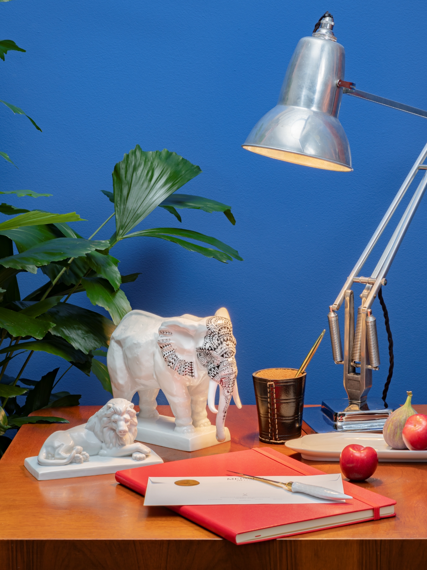 Within the long tradition of animal sculptures, Maximilian Hagstotz, for the first time in Meissen’s history, developed the "Big Five" as a cohesive series. Each animal features an elaborate decorative pattern that highlights its most characteristic features and ties the group together as an artistic whole. The angular silhouettes are based on African wooden sculptures. His group of figurines also served as inspiration for the Hugo Boss x MEISSEN collection in December 2019, for which limited-edition mugs were created that featured motifs from the "Big Five". Driven by his ambition, the 28-year-old artist has given particular importance to charting out new design routes and experimentation within his artistic practice. All the while propelled by his self-determination to always improve on his previous work.