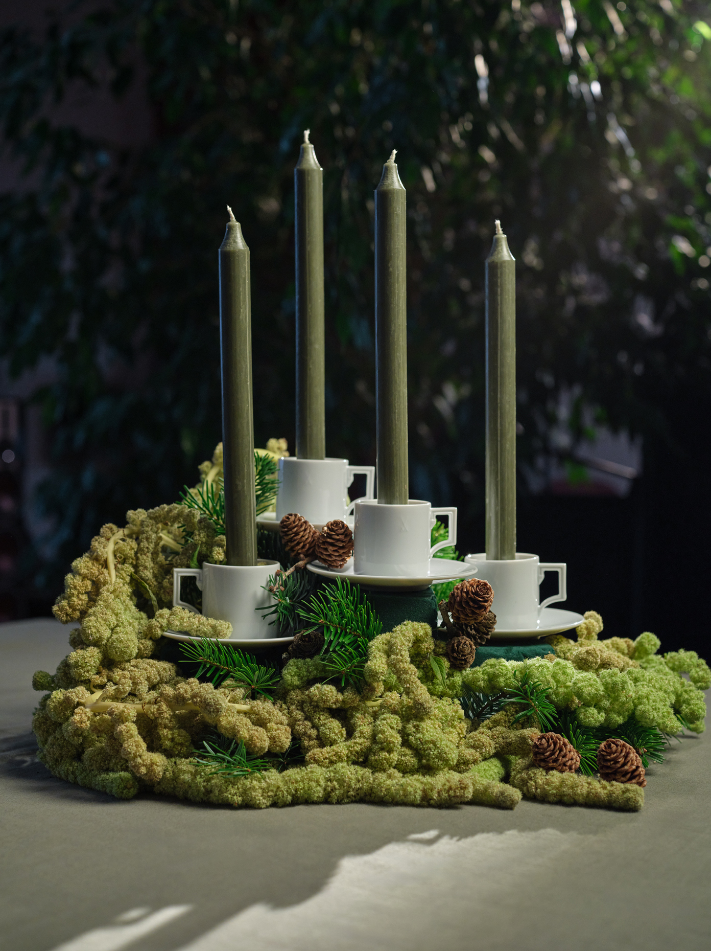 A particularly stylish way to decorate the Advent wreath is to integrate exclusive porcelain. This year, our MEISSEN Advent wreath is adorned with small espresso cups made of Meissen porcelain. These miniature works of art are a real highlight and give the traditional wreath a modern and elegant touch. They are a wonderful alternative to conventional candle holders. Simply place a candle in each cup and you have a stylish combination of candles and porcelain art. Stick candles in particular fit well in the cups and create a harmonious play of light. We hope you enjoy making your own and wish you a peaceful Advent season with your loved ones!