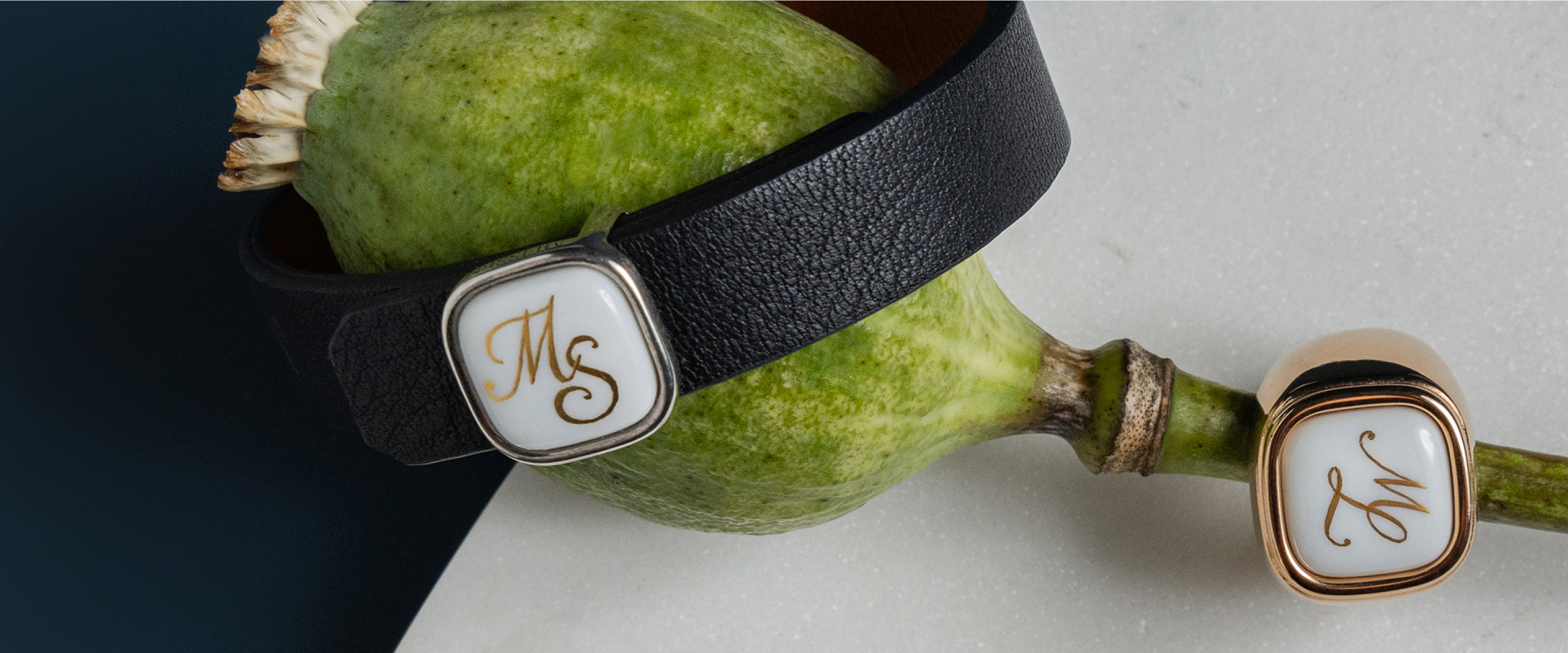 The MEISSEN porcelain manufactory has been combining pure white porcelain with the finest materials such as silver and gold in its jewellery collections for centuries, which is particularly reflected in the manufactory's monogram rings. The initials are hand-painted onto the wafer-thin porcelain sheets by talented artists in perfect brushstrokes, giving each ring its own unique touch. Whether decorated in black, platinum, gold or cobalt blue, each ring makes a statement and is appreciated by men and women alike.
