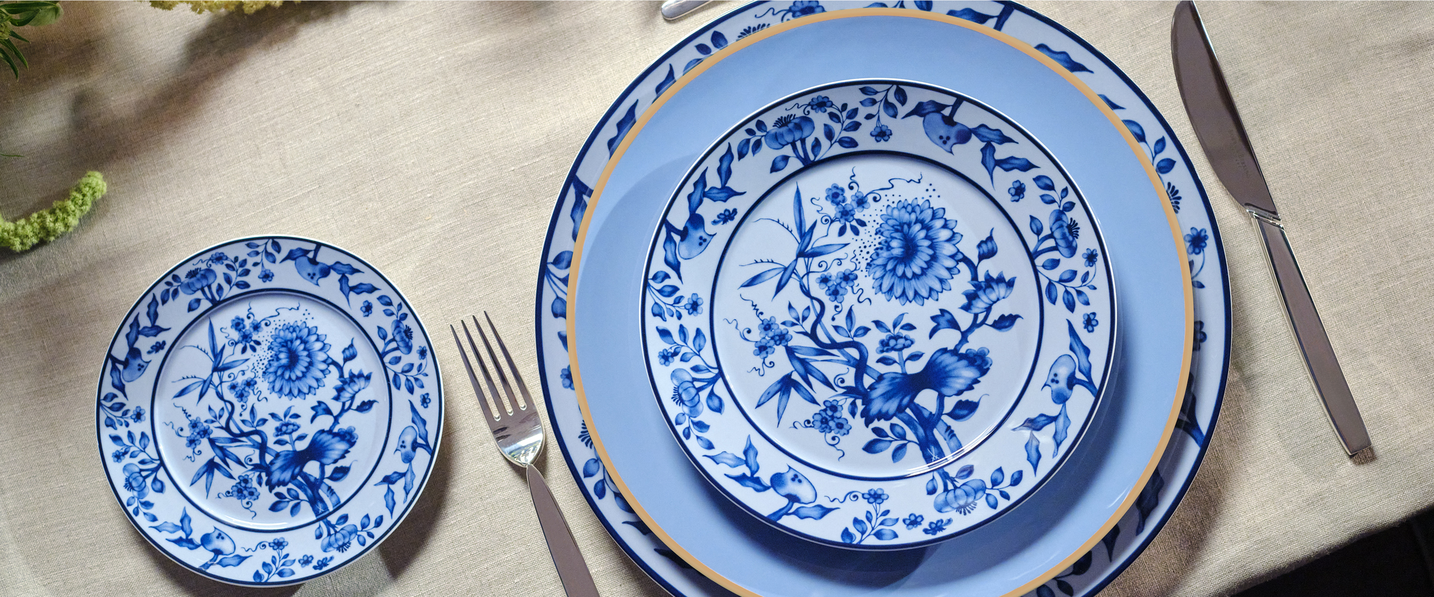 The origins of MEISSEN patterns can be traced back to the first half of the 18th century. Around 1730, the first variants of the world-famous blue onion pattern were created on European hard porcelain. Inspired by designs on Chinese porcelain and faience, the MEISSEN blue painters developed the iconic cobalt blue onion pattern, which became the manufactory's best-known underglaze painting. The pattern was given the name “blue onion” due to the melon, which was unknown in 18th century Europe and was mistaken for an onion and, in combination with the peach, still adorns the rim of the plate today. Before the pattern known today as the classic blue onion became established, there were several variations at the same time.