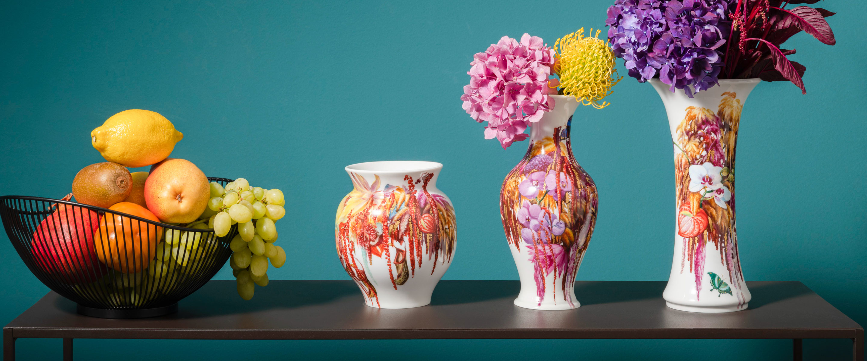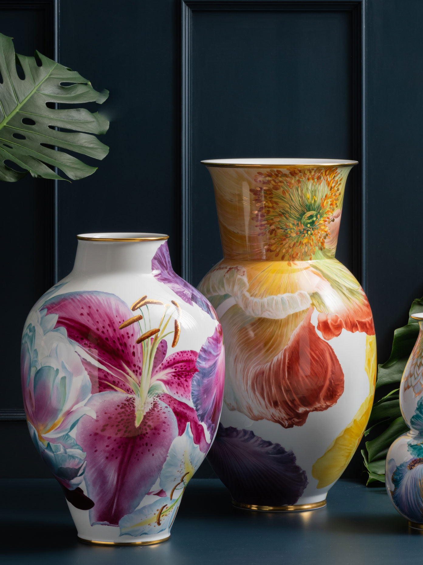 It doesn't have to be the complete décor in a gaudy hue in every case - you can also achieve a great effect with small colorful accents, which can positively affect your mood and that of your guests. Like with beautiful murals made of the finest porcelain, painted with impressive motifs of intense colors - like the limited masterpiece "Fabulous Floral Flourish". Also eye-catching in any room are the vases from our "MEISSEN® Cosmopolitan Giant Bloom" collection, which with impressive, large-scale painted flower blossoms are not only a true work of art in their own right, but are of course also the perfect way to stage fresh, intensely colored flowers.