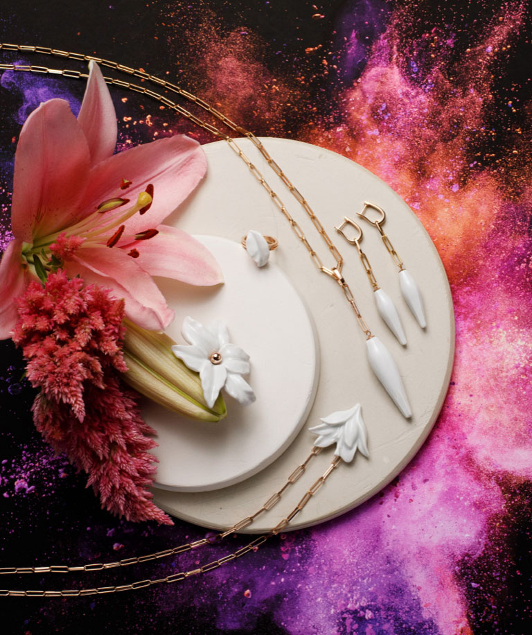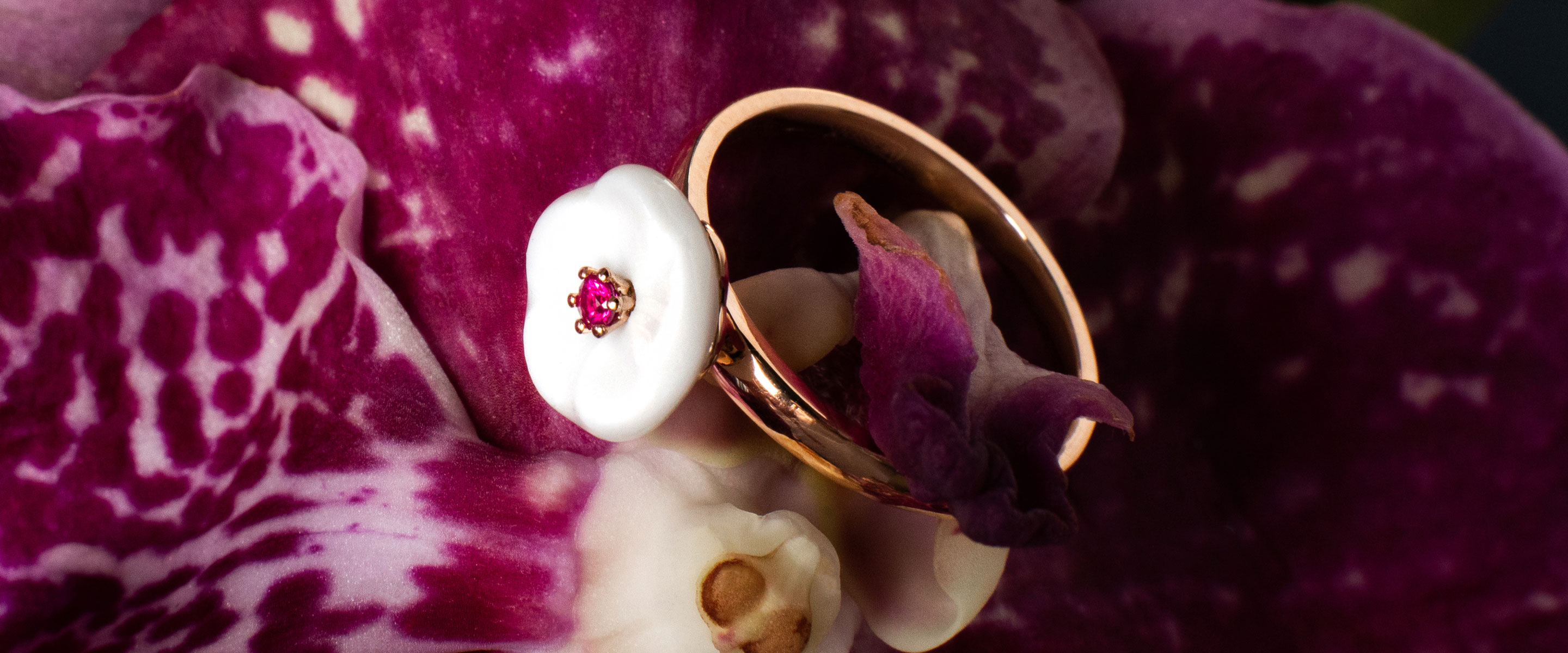 Are you also on fire for “Viva Magenta”? Then discover the combination of red and white gold and create striking statements full of luminosity and optimism with MEISSEN and the color of the year. Both silver and gold jewelry can be perfectly combined with the trend color and so the jewelry pieces of the "1739 Royal Blossom Basic Ruby Collection” is the perfect choice for all those who want to add self-assurance to their appearance. On table and dining table, the luminous gerbera decor of the "Giant Bloom" collection becomes a powerful statement and the "Giant Bloom" panther, also attracts all eyes.