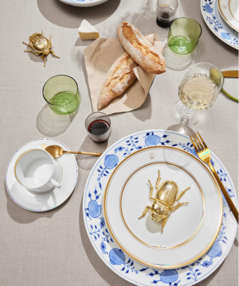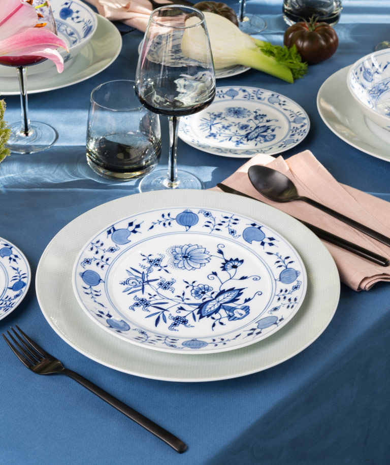 With her wealth of experience in “Indian” and gold painting, Andrea Mai was given the opportunity to realize the newly developed "Noble Blue" décor on Meissen’s modern tableware series “N°41”. Given that the “Onion Pattern” – itself an East Asian décor which derived from “Indian painting” – inspired the modern pattern design for Meissen’s “N°41” series, Mai was the obvious choice. One thing that particularly spoke to Mai is the fact that “Noble Blue” can be combined in countless ways within the tableware series, but also with other porcelain pieces. Place, dinner and dessert plates all feature their own ornamental compositions, which result in striking, ever-changing arrangements when combined with one another. Another feature which resonated with Mai is the pattern’s modern and timeless design. The use of under- and inglaze paints makes all pieces dishwasher-safe, rendering the collection perfect for everyday use.