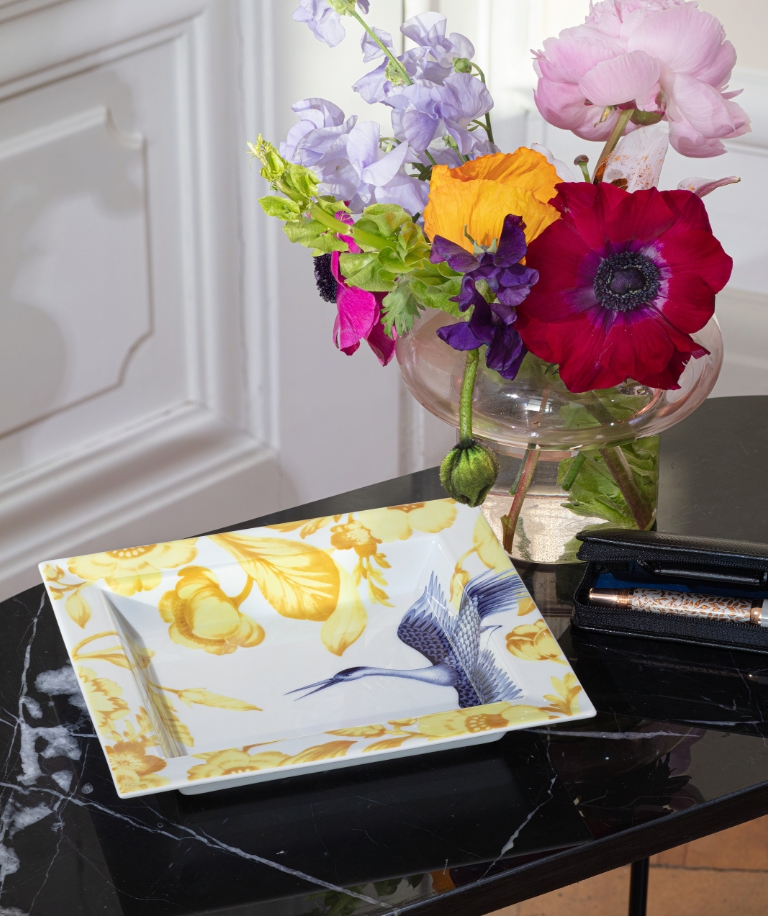 Decorative motifs from over three centuries are arranged in cutouts like the petals of a camellia and united on one figurine to create a unique patchwork effect. From the iconic “Onion Pattern” to bird motifs and contemporary décor patterns such as “Royal Palace,” the artful hand-painting in brilliant colours brings the creative diversity of the manufactory into the spotlight. This work draws from the world’s largest and oldest trove of porcelain forms, models, patterns and décor from every epoch, as well as ten thousand colour formulas from the manufactory’s own paint laboratory.
