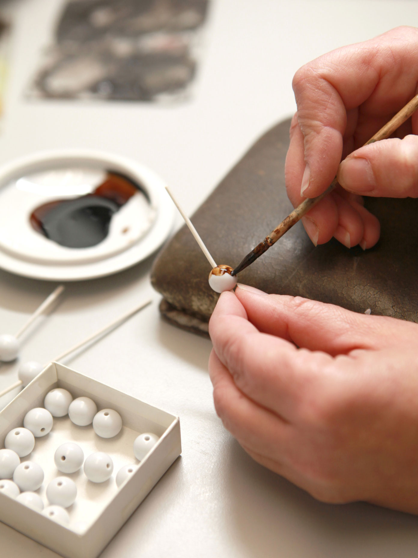 It is different with the porcelain pearls from MEISSEN. Here we know exactly about their origin. Unique craftsmanship with more than 300 years of tradition uncompromisingly meets the incomparable grace and elegance of real pearls. With so-called luster paint, the shimmering luster of natural pearls is recreated. Luster colors belong to the oldest color formulas of the manufactory and have been used again and again on magnificent vases and paintings in MEISSEN since the 18th century. In the final firing, they create iridescent metal oxide layers that reflect the light like mother-of-pearl. As the perfect finishing touch and shining highlight, the porcelain pearls complete our exquisite jewelry pieces in our Pearl Collection. The perfect gift for their biggest sweetheart or for yourself.