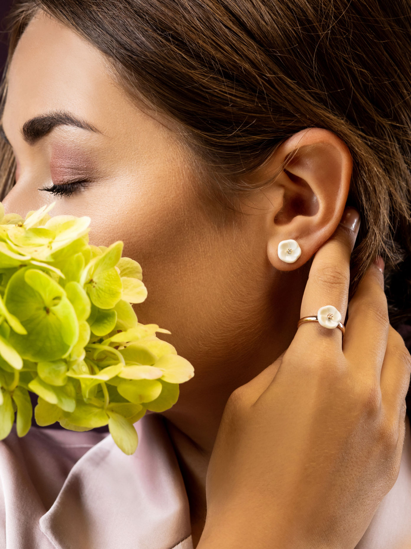 Earrings have been an integral part of jewelry collections for thousands of years and are undoubtedly one of the most multifaceted accessories. They add an individual touch to any outfit and are masterful at subtly accentuating one's own style. But they are far more than just stylish details - they embody emotions and preferences, reflect stories and traditions, and are an expression of our identity. Reason enough that we at MEISSEN are also passionate about earrings. And this with tradition: Already since 1714, only a few years after the foundation of the manufactory, so-called gallantry goods were produced with the white gold and other noble materials under the guidance of the royal court jeweler and goldsmith Johann Jacob Irminger. To this day, we produce jewelry with porcelain and have numerous collections in our portfolio - such as the "Pearl Collection", the "Bloom Collection" or the "1739 Royal Blossom" collection with the iconic snowball blossoms.